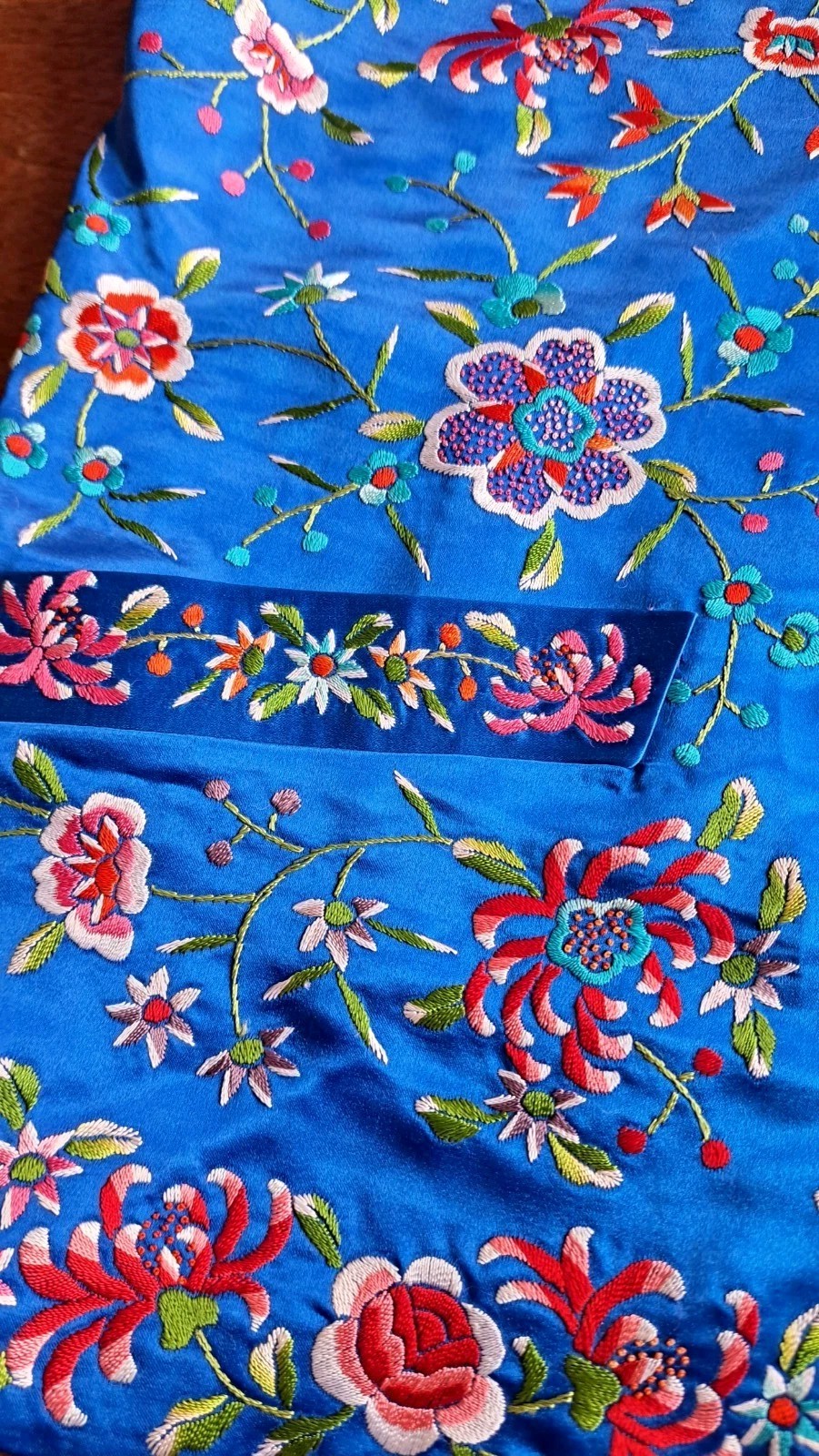 как выглядит Vintage Plum Blossom Blue Silk Satin Embroidered Mandarin Collar Jacket 36 S/M фото
