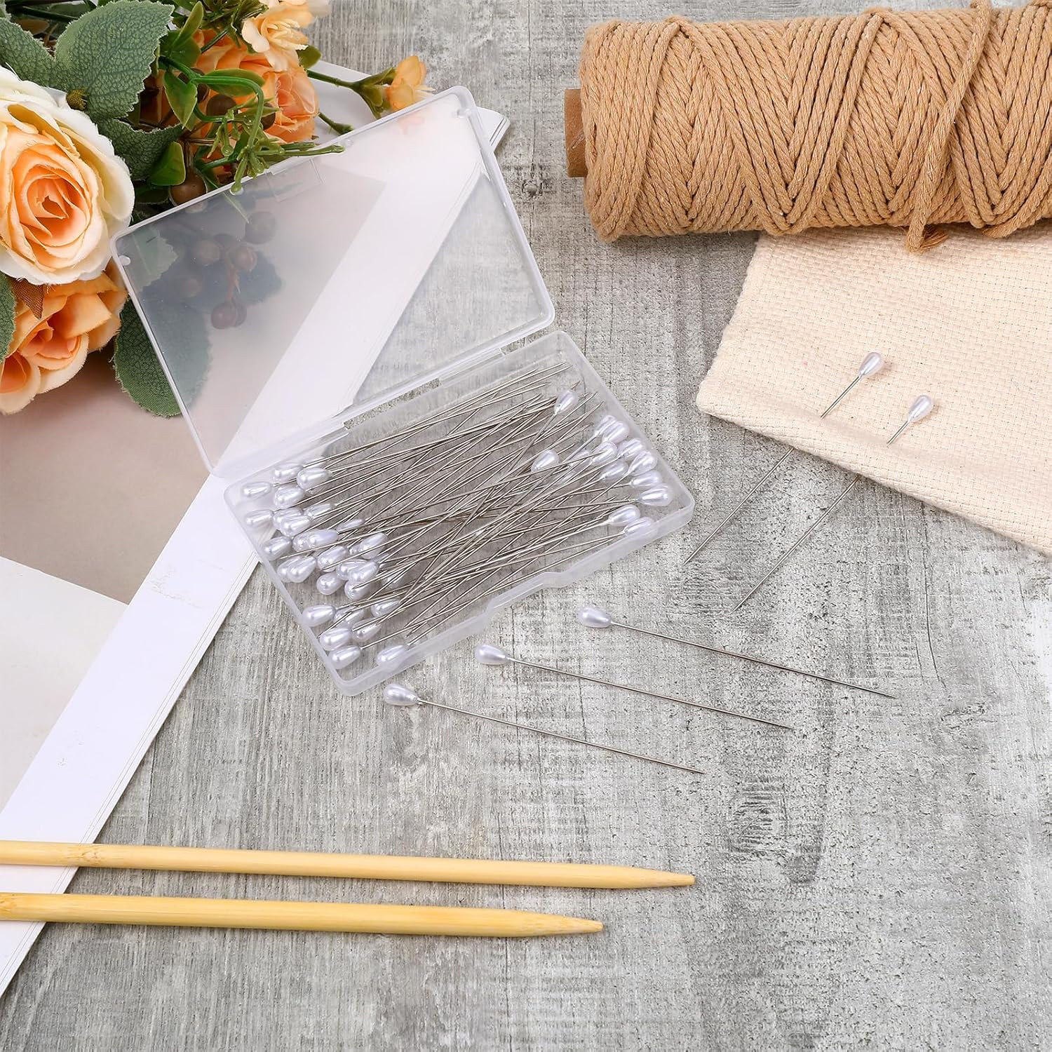 как выглядит Pearl Head Pins, 50 PCS 3 Inch Corsage Boutonniere Pins Straight Pin with Pearl фото