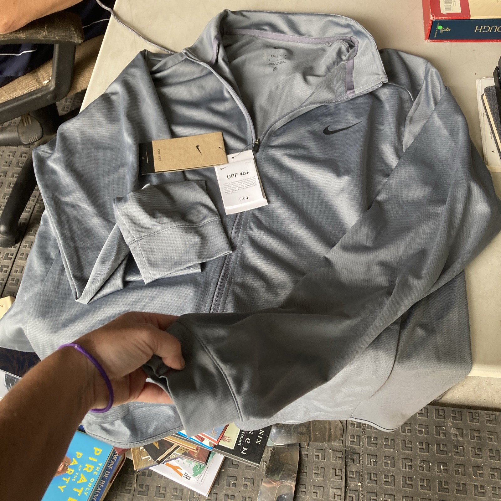 как выглядит Nike Dri-FIT Jacket Men s Large Gray Full-Zip Lightweight Running Activewear фото