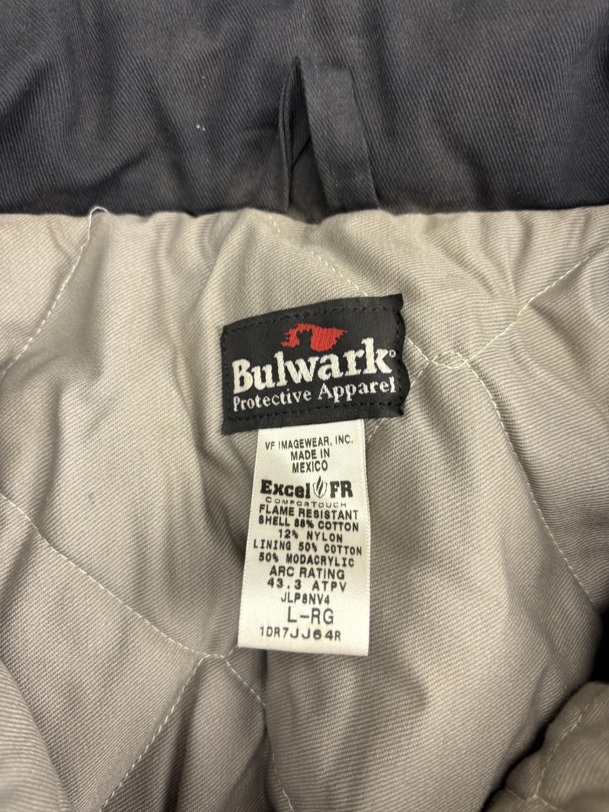 Bulwark Jacket Mens Large Flame Resistant Navy Blue FR Work Coat Quilted Lined