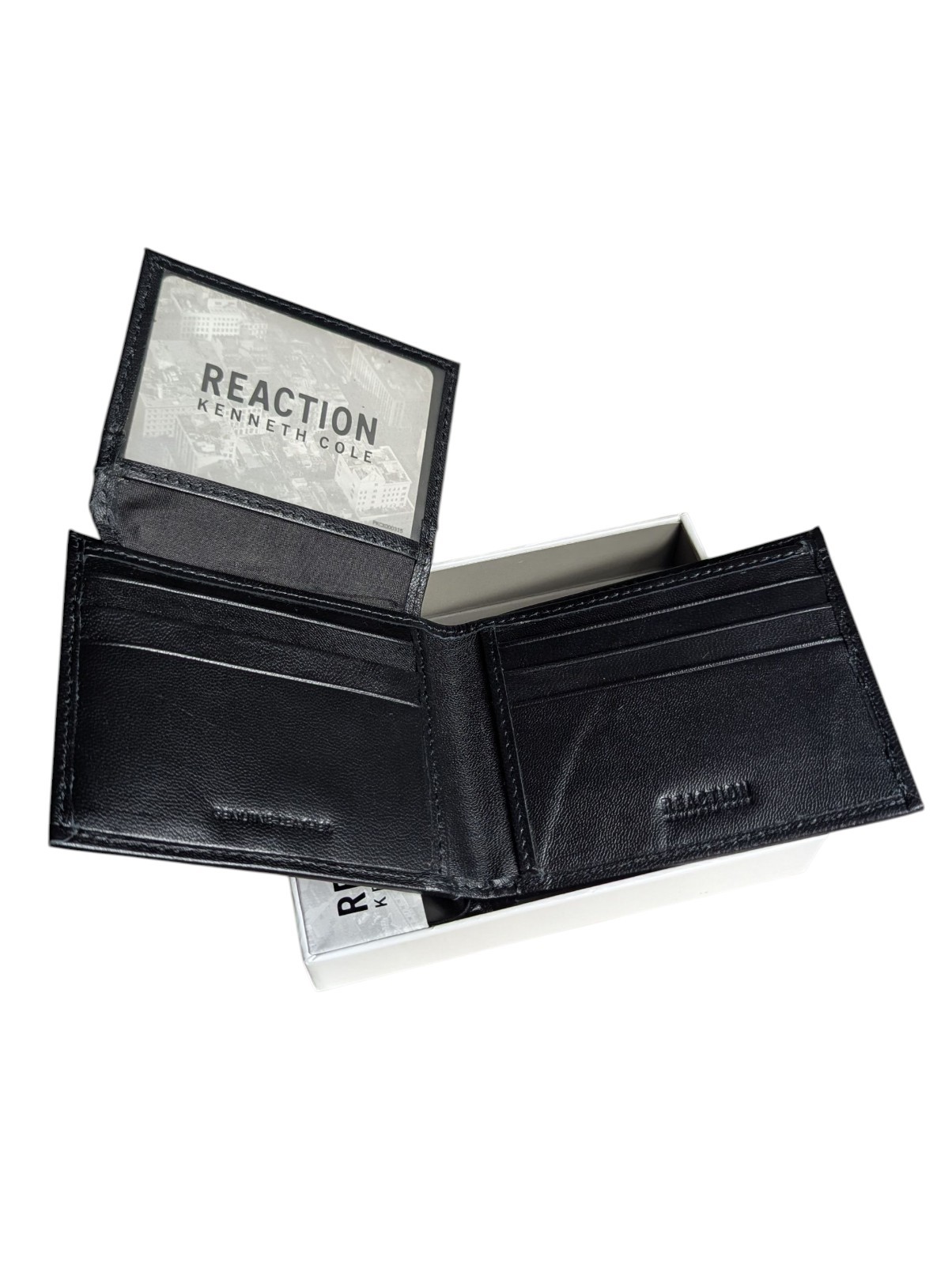 Kenneth Cole Reaction Men's Logo Leather Passcase Wallet Black New Free Shipping