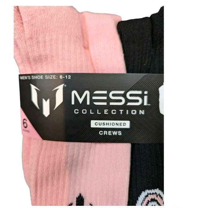 MESSI 10 Collection Men's Crew Socks Size 6-12 Pink Black White Gray Set of 6