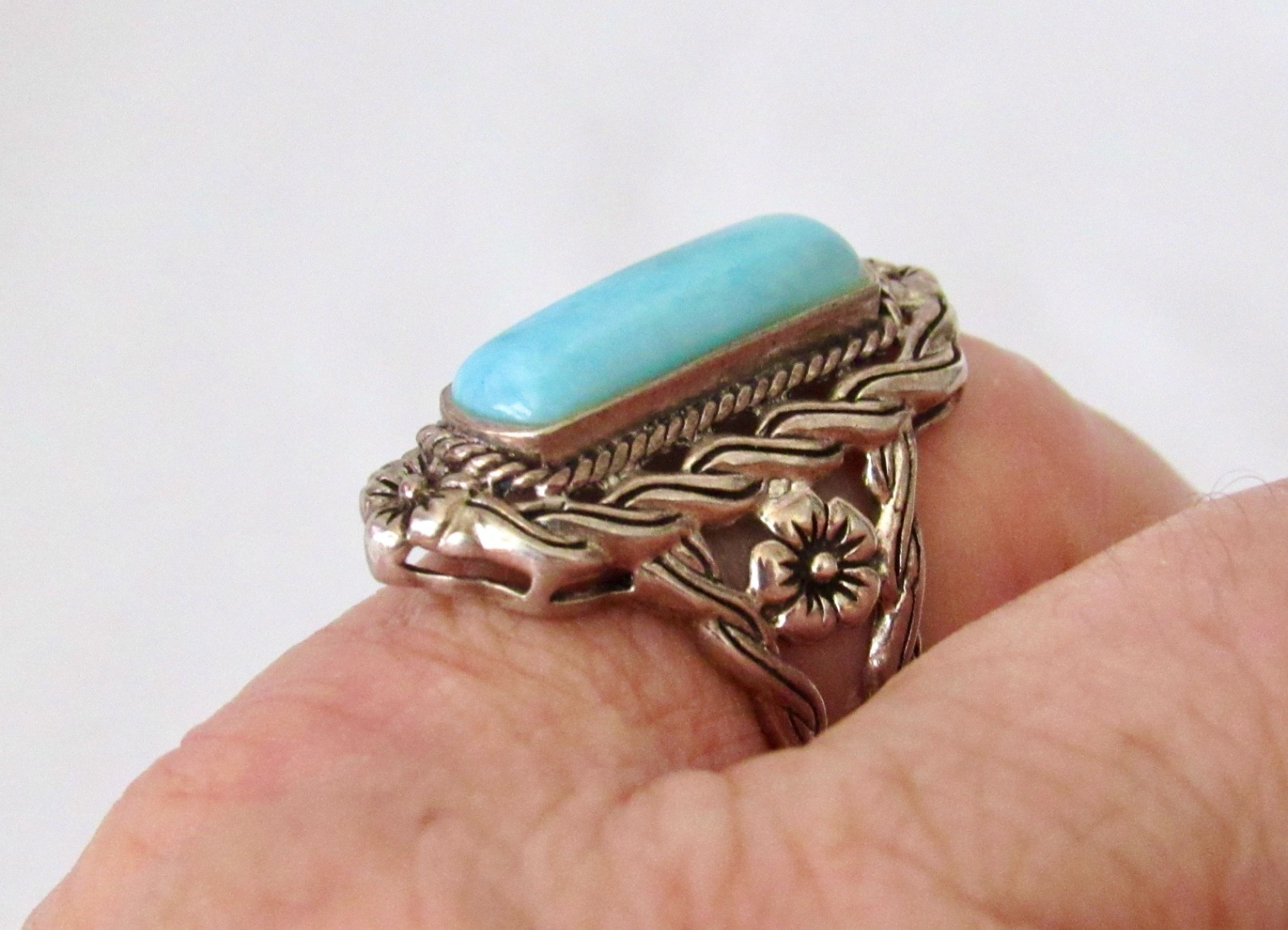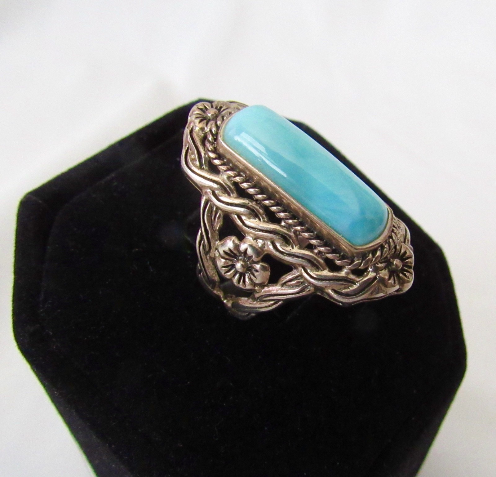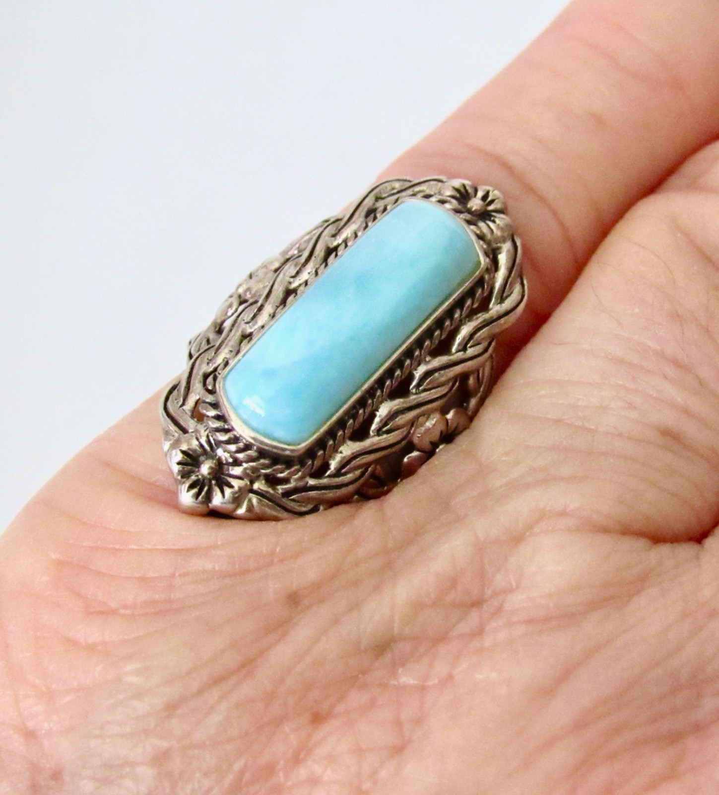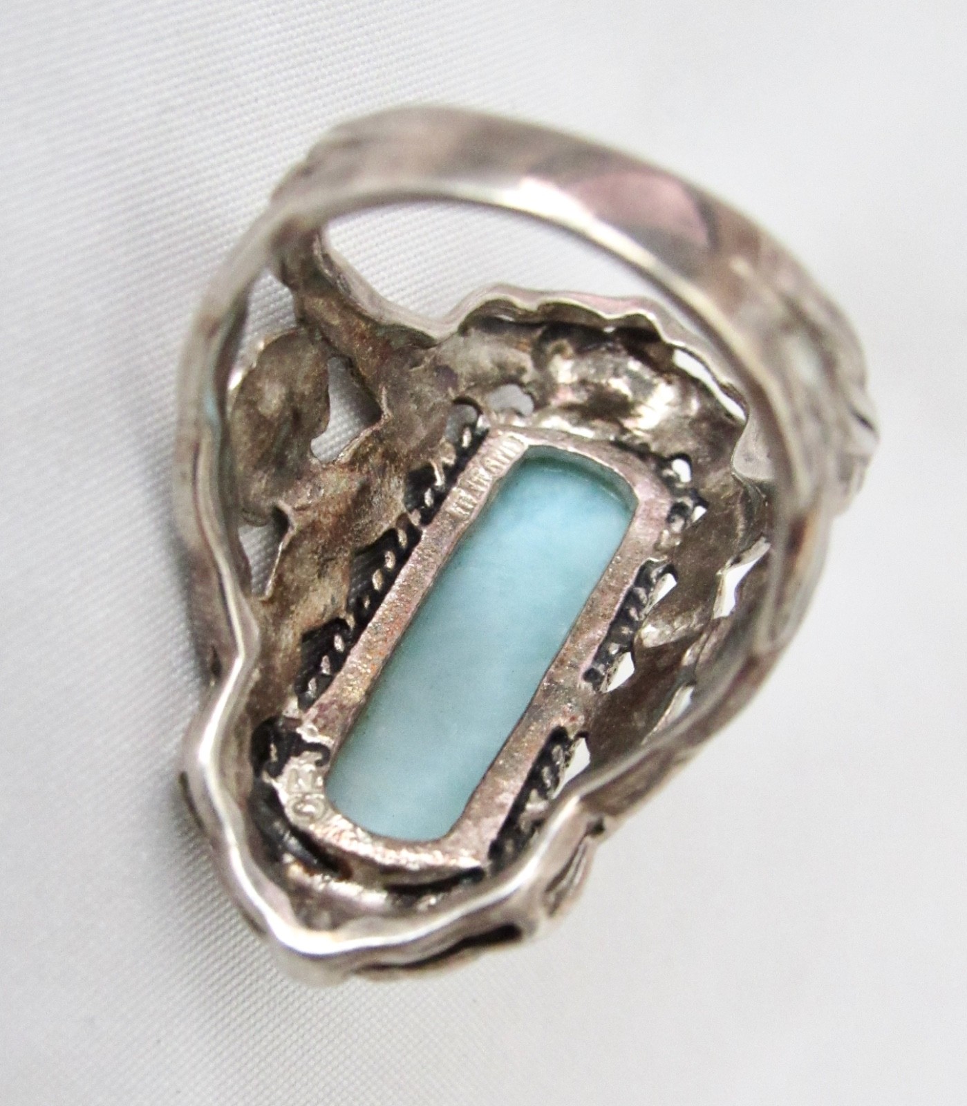 925 Sterling Silver Larimar Ring Sz 7.5 - 7.4 grams Gorgeous Design L K WoW