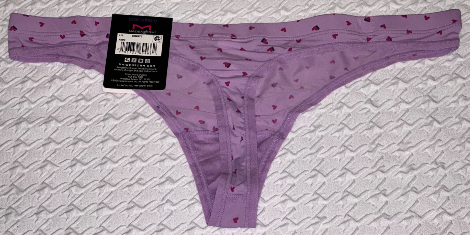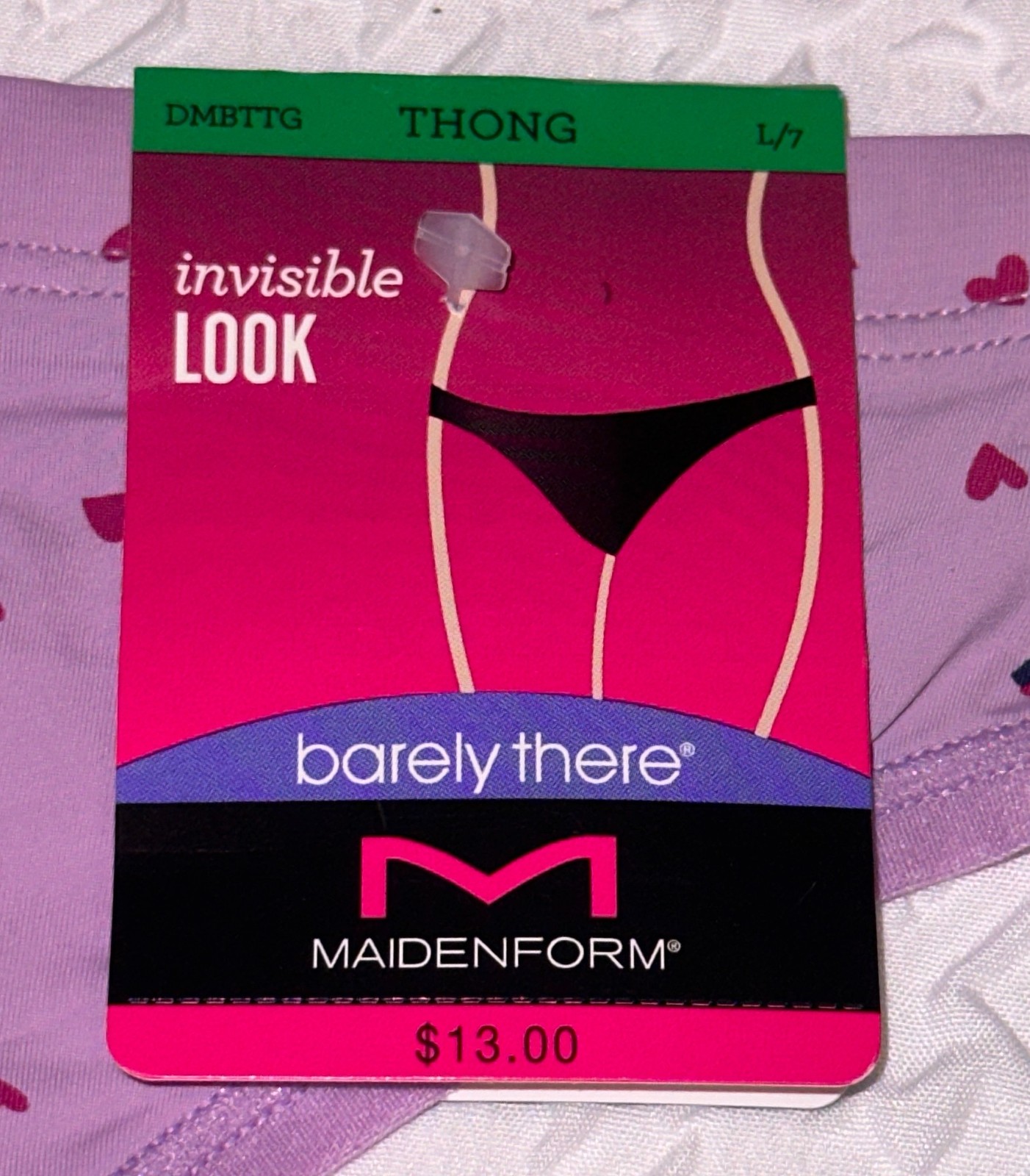 как выглядит MAIDENFORM Barely There Invisible Lilac Fuchsia Black Thong Panty Women M L XL фото