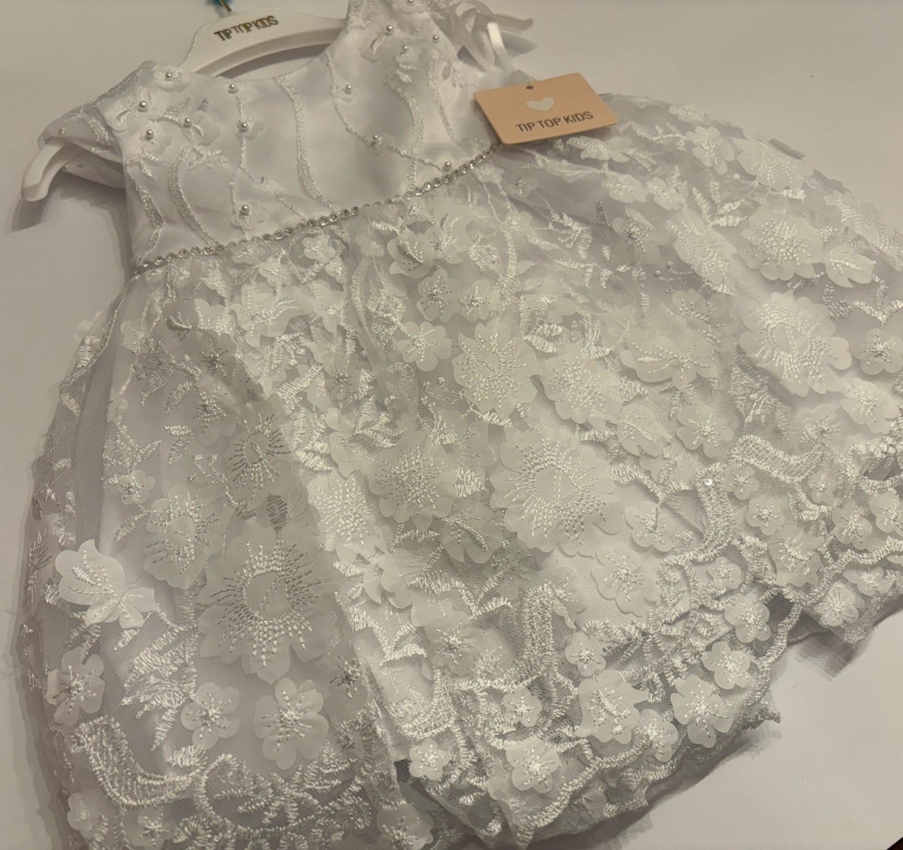 Tip Top Kids Infant Girl 6M White 3D Floral Applique Special Occasion Dress NWT