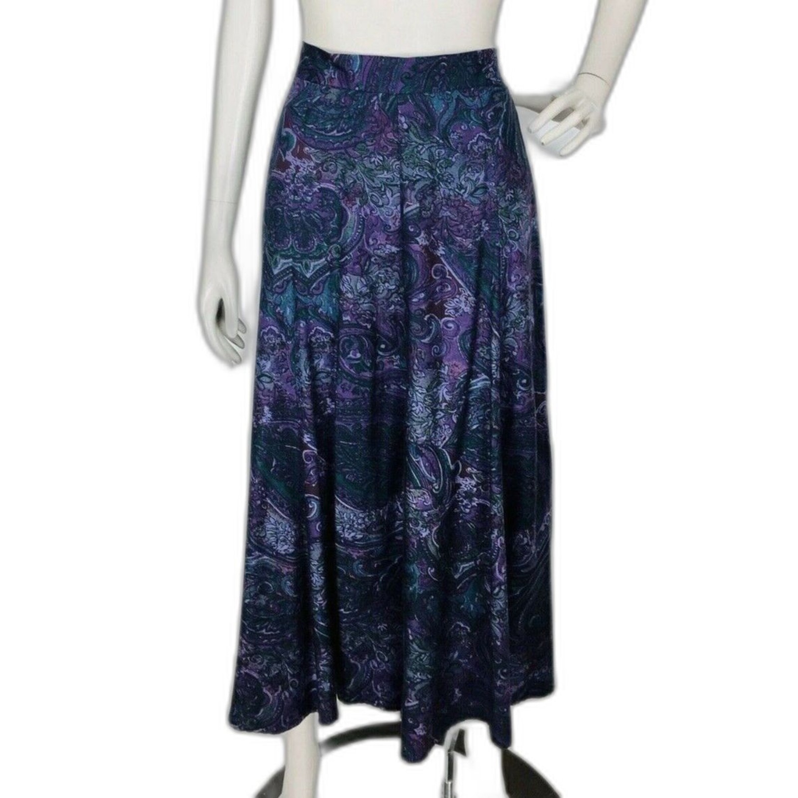 как выглядит Vintage 80s Purple Floral Paisley High Waist Maxi Skirt Pockets Size 12 фото