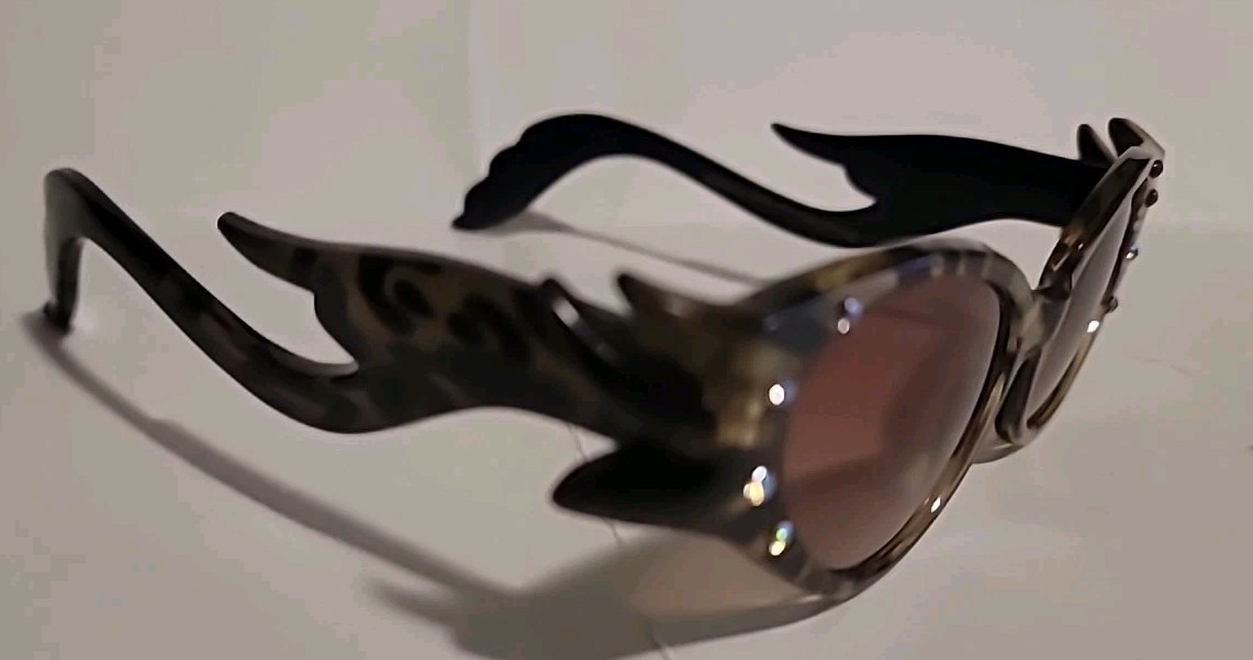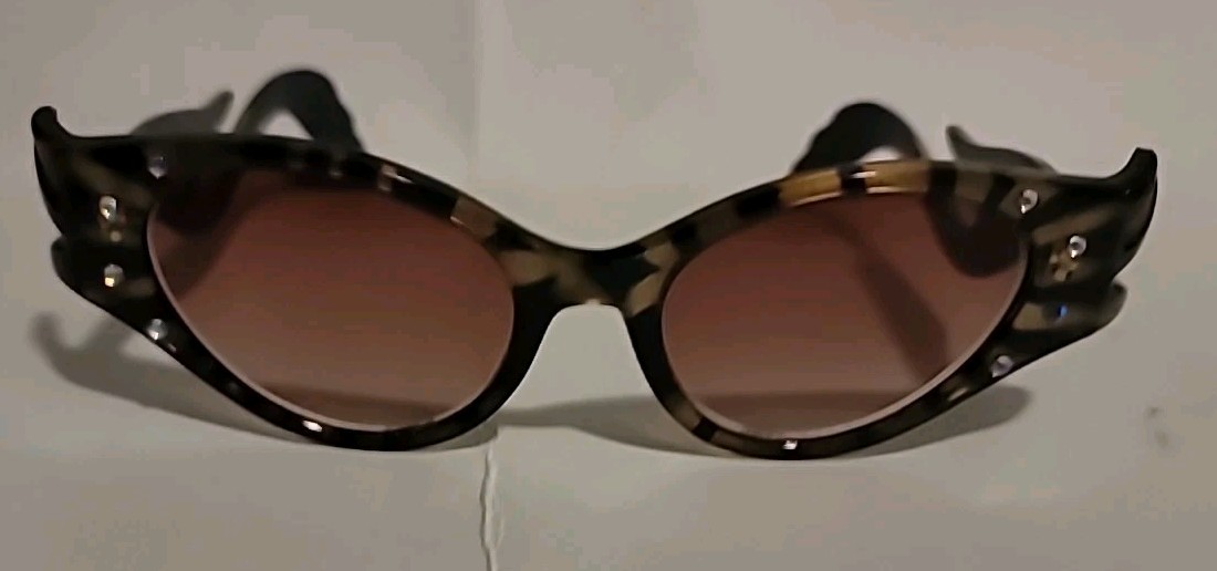 как выглядит Dr Peepers Cat-Eye Gold And Black Flowing Frames Rhinestones Sunglasses New фото