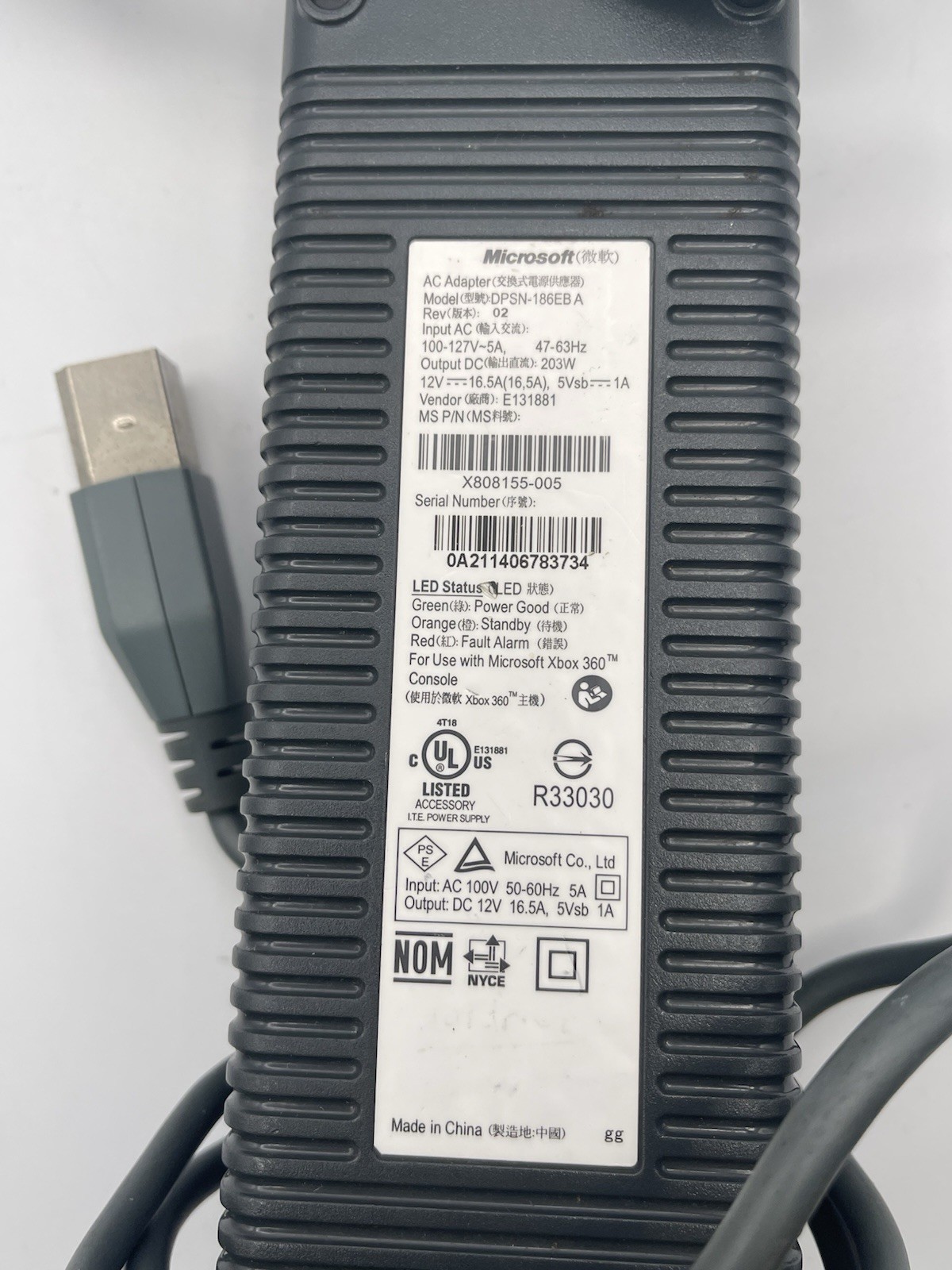 как выглядит Microsoft Xbox 360 150w Power Supply Brick AC Adapter PB-2151-03MX OEM фото
