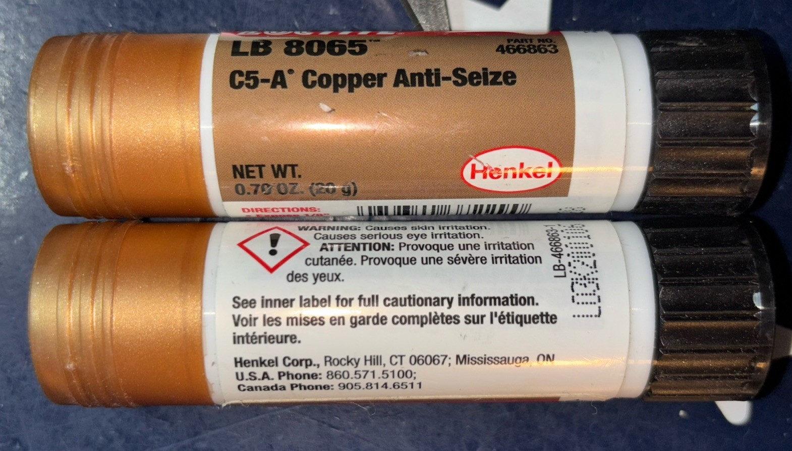 Two Loctite LB 8065 20g C5-A Copper Anti-Seize EXP 10/28 37229 466863 TWO TUBES
