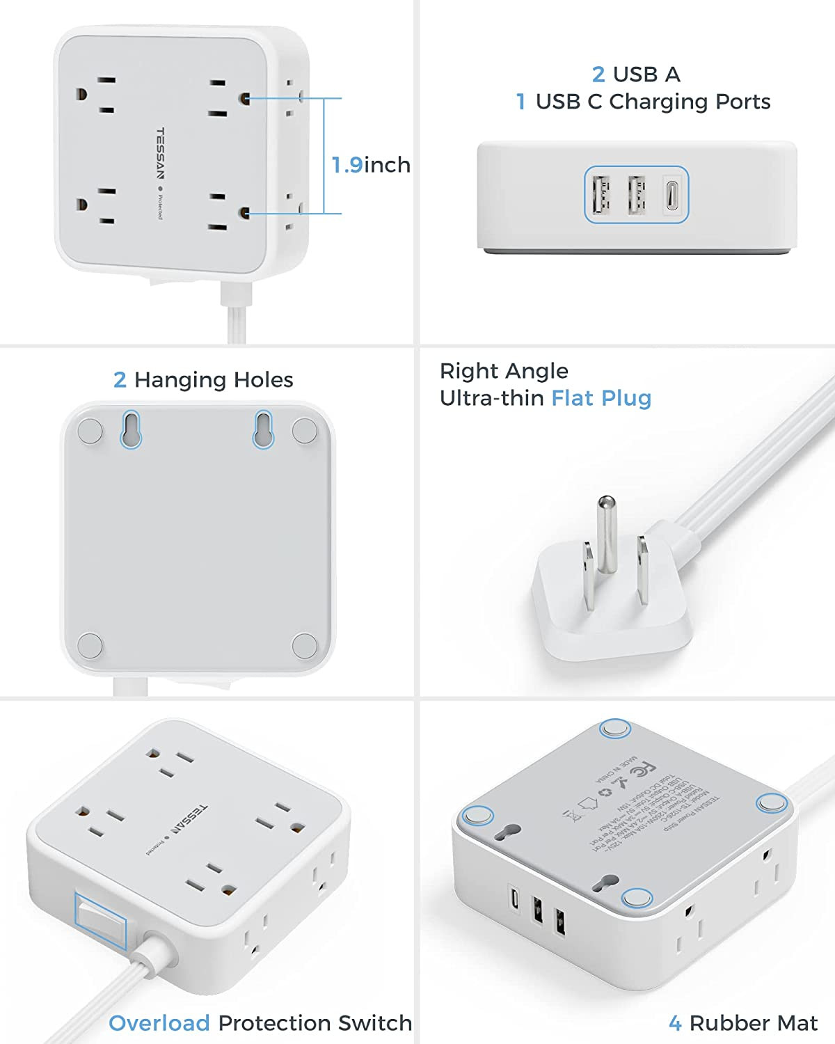 Special Feature: On And Off Switch, Surge Protection, Usb Slot, Wide Spaced Outlet