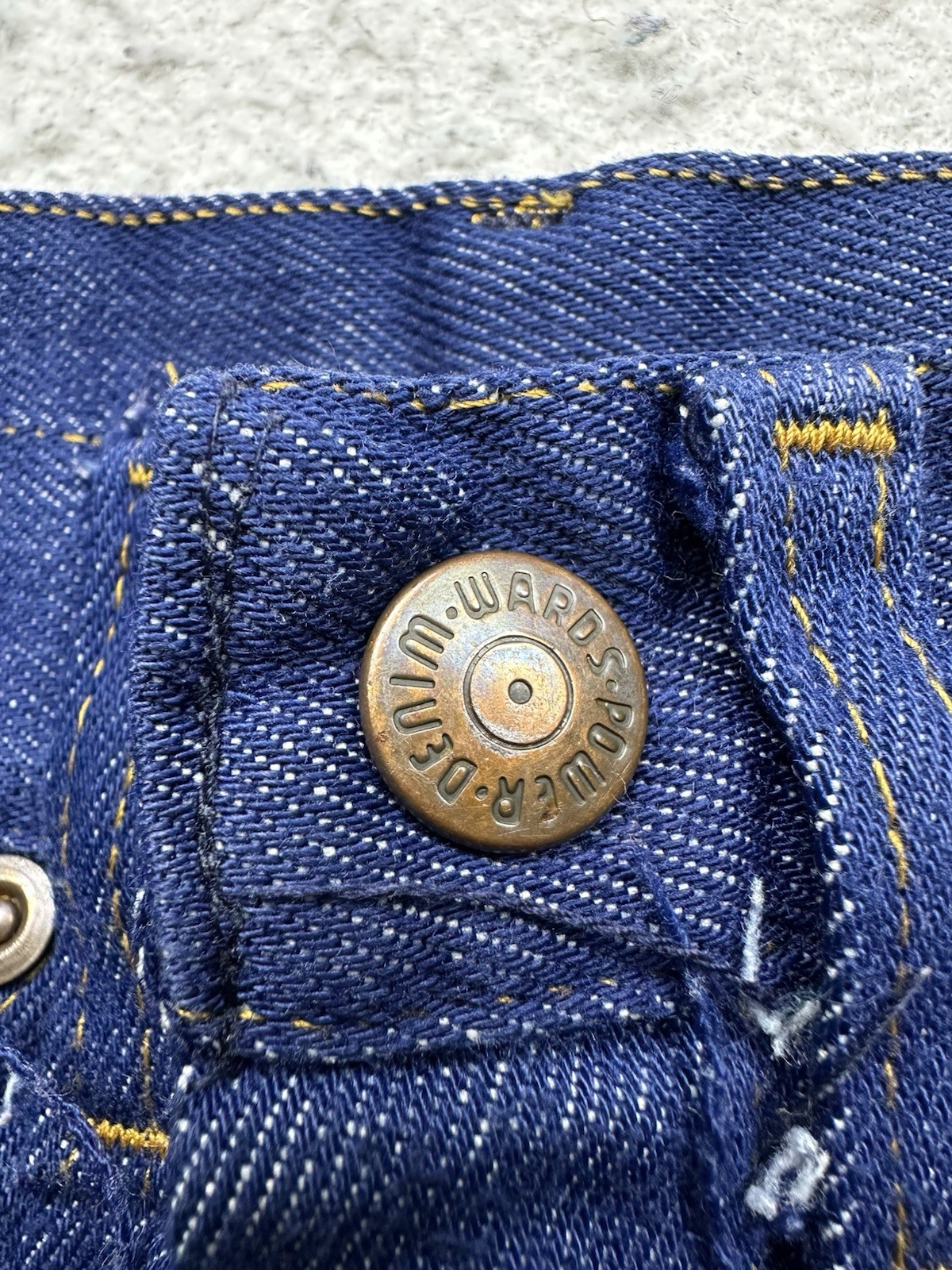 как выглядит Vintage Kids Montgomery Ward Flare Disco Jeans 60s Dark Wash USA Made 4 Months фото