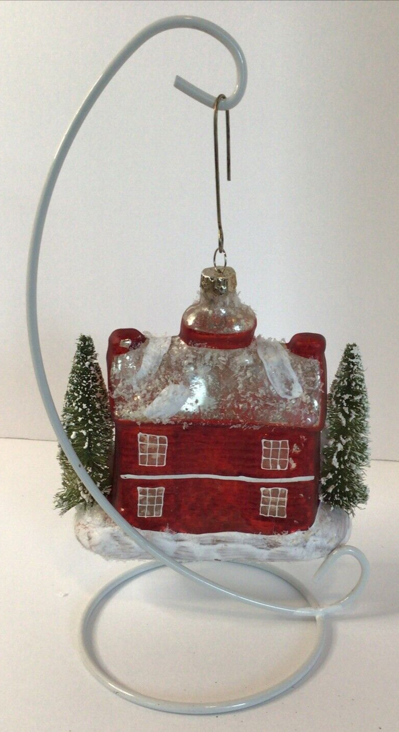 как выглядит Ragon House Red Mercury Glass Christmas Georgian Mansion Ornament with Trees фото