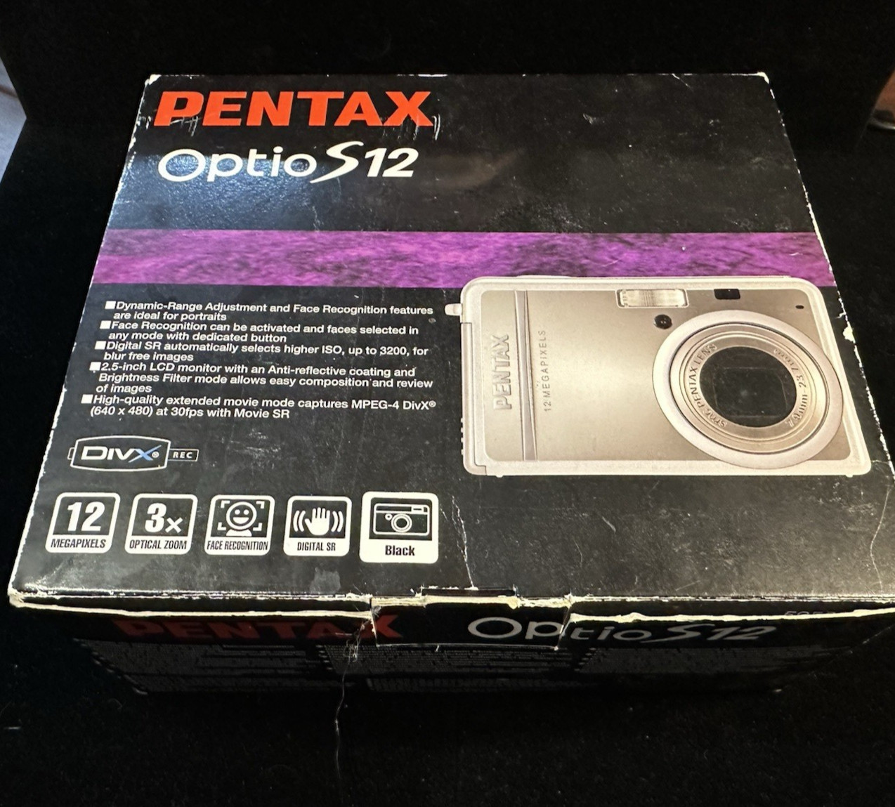 Pentax Optio S12 Digital Camera 12MP 3x Zoom Black w/ Case 2GB SD Card Box