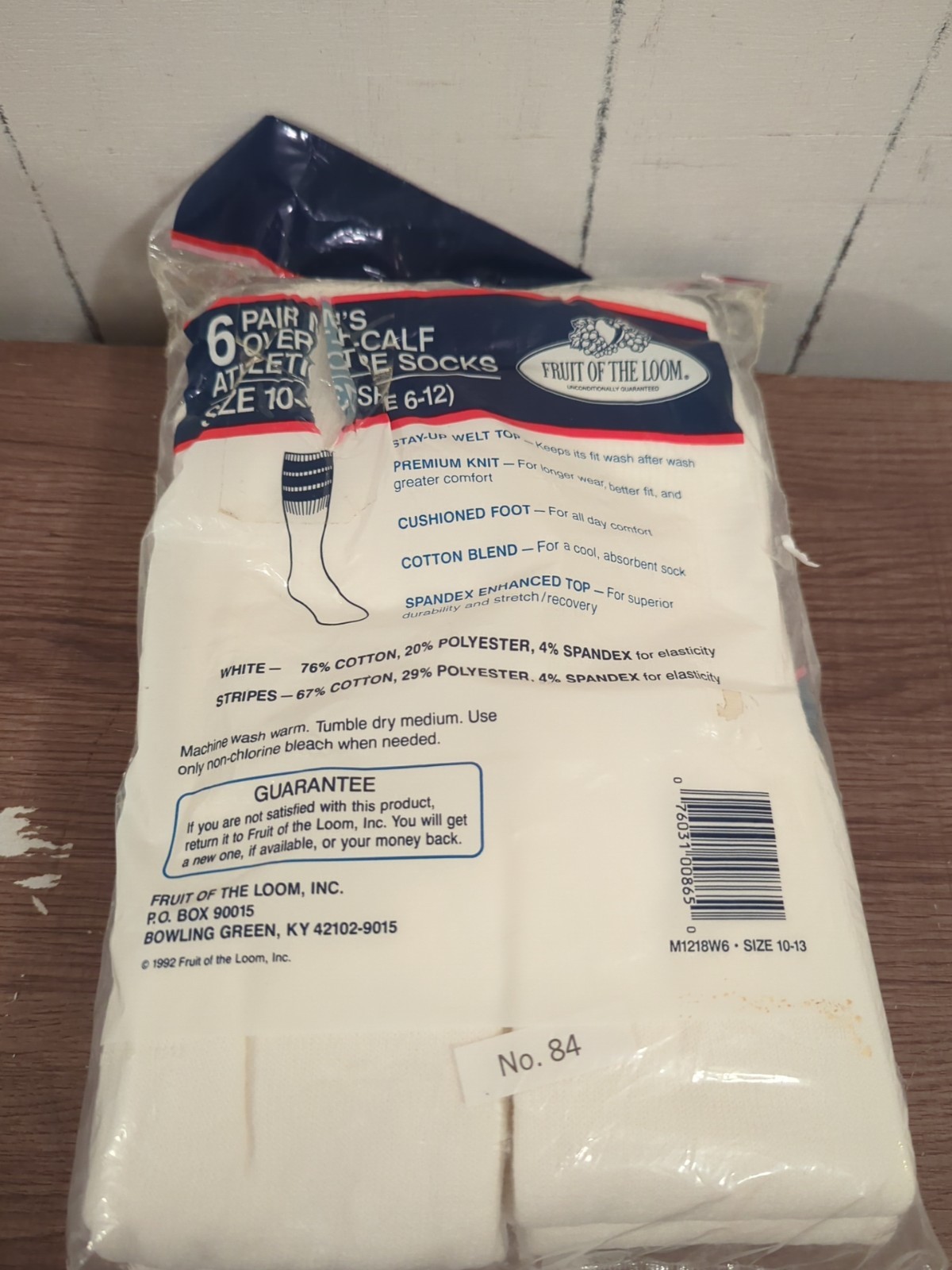 Vintage 1992 Fruit of The Loom Tube Crew Socks Men's Size 10-13 Shoe 6-12 6 Pair