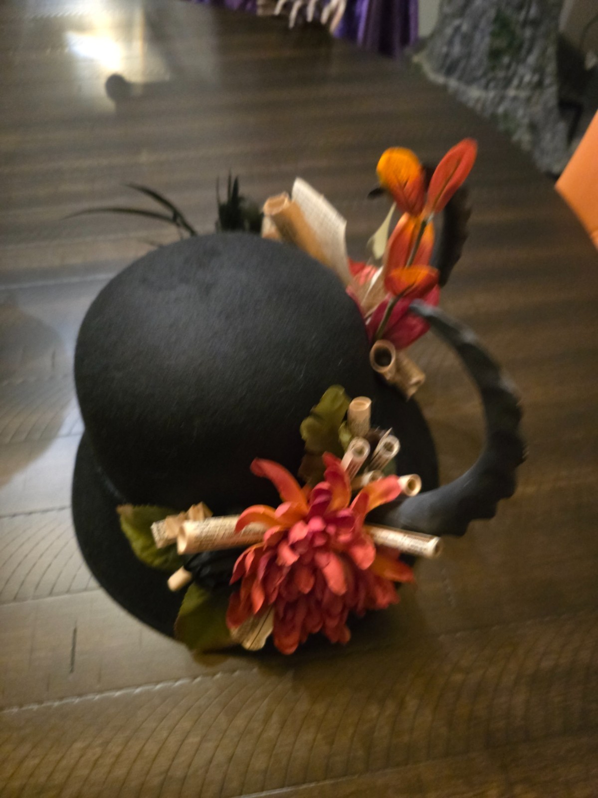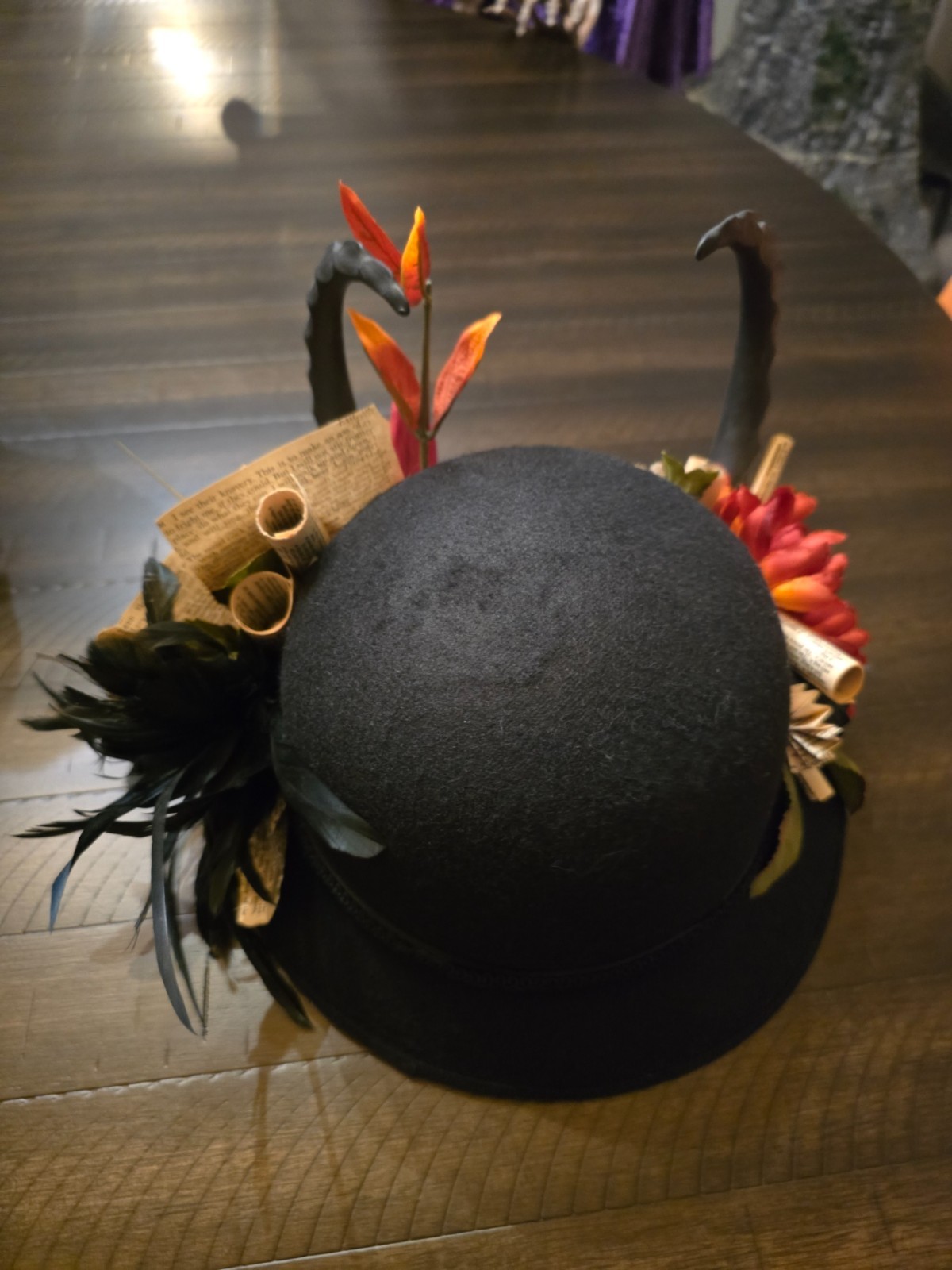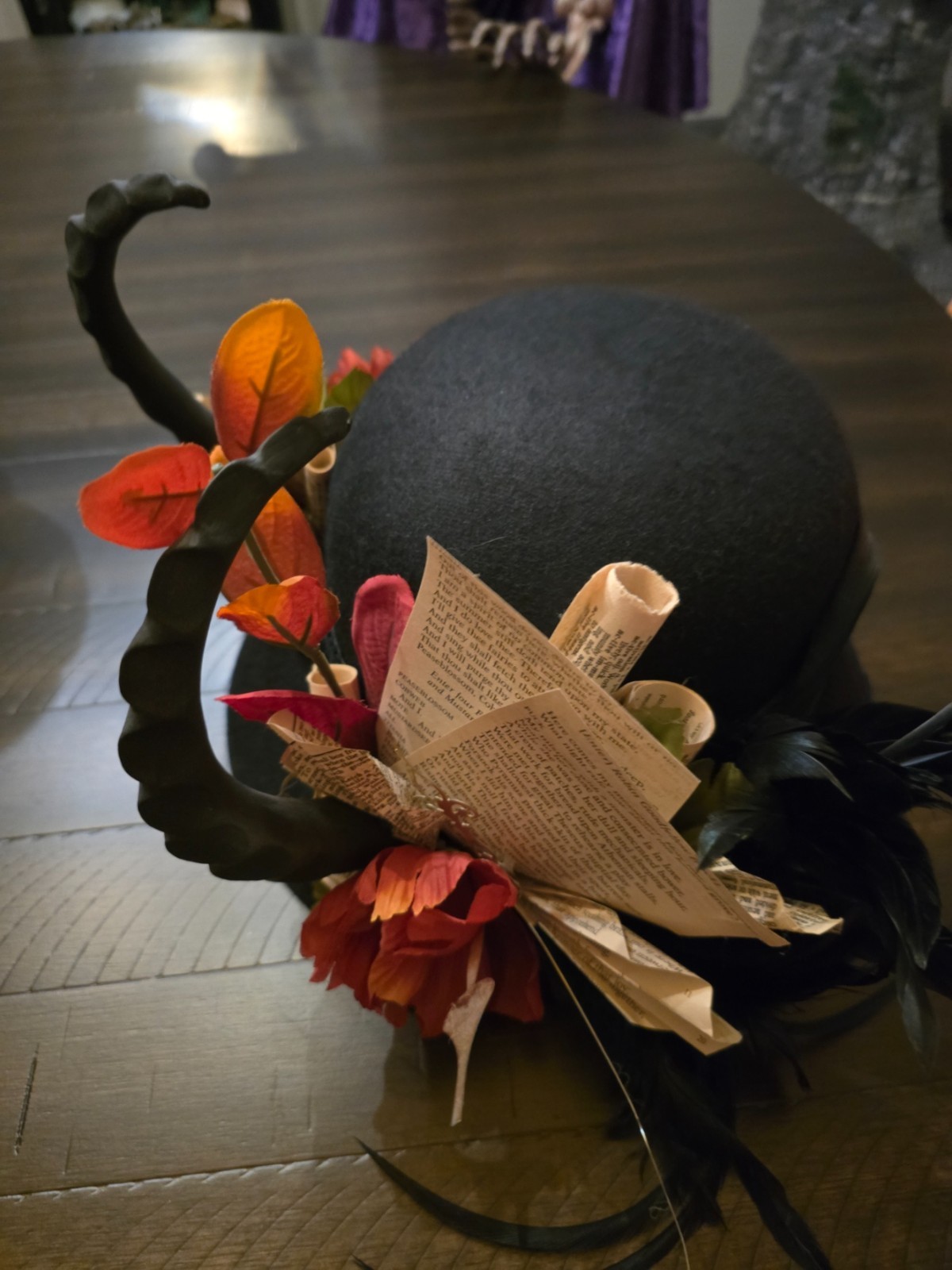 NEW Womens Black Bowler Derby Hat w/ Horns Fall Flowers Halloween Costume