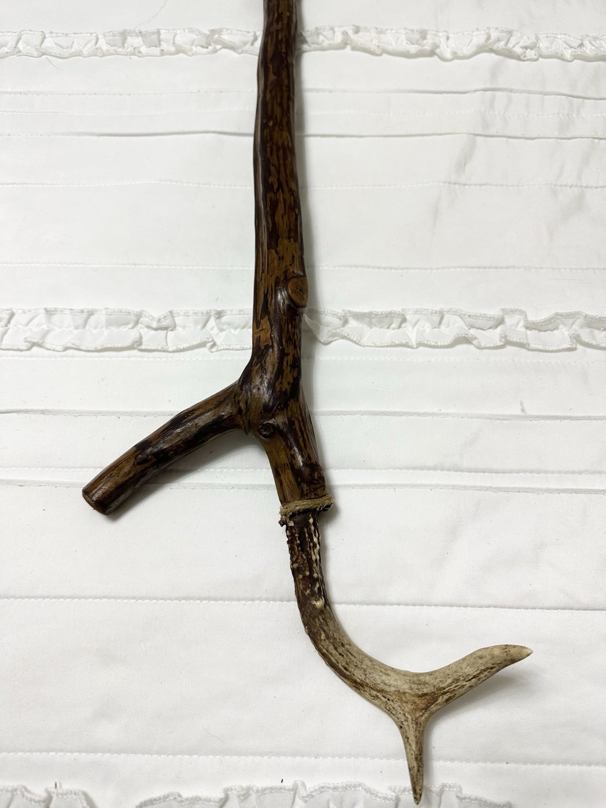как выглядит Antique Handmade Whittled Walking Stick Cane With Antler Handle 45 Overall фото