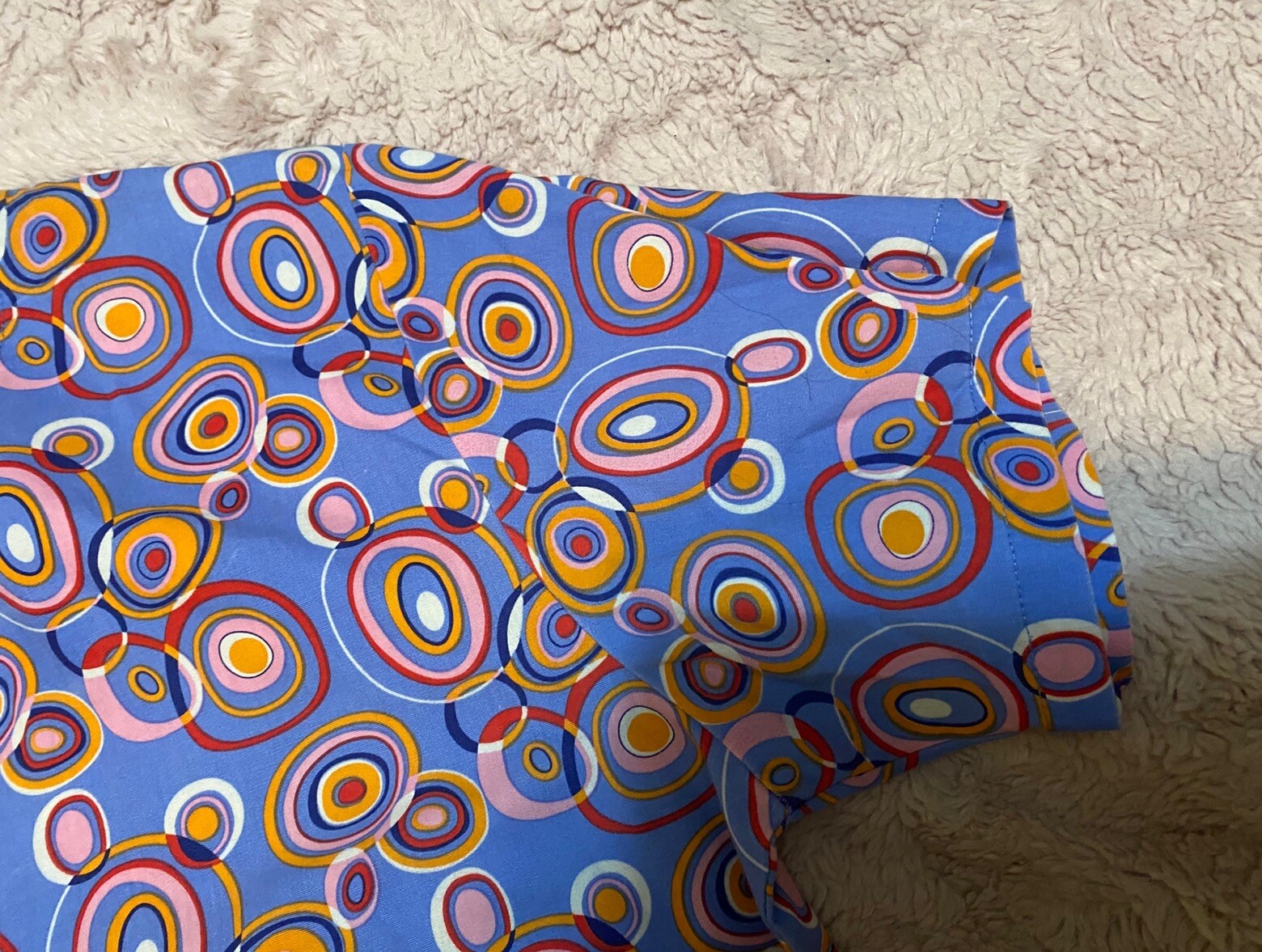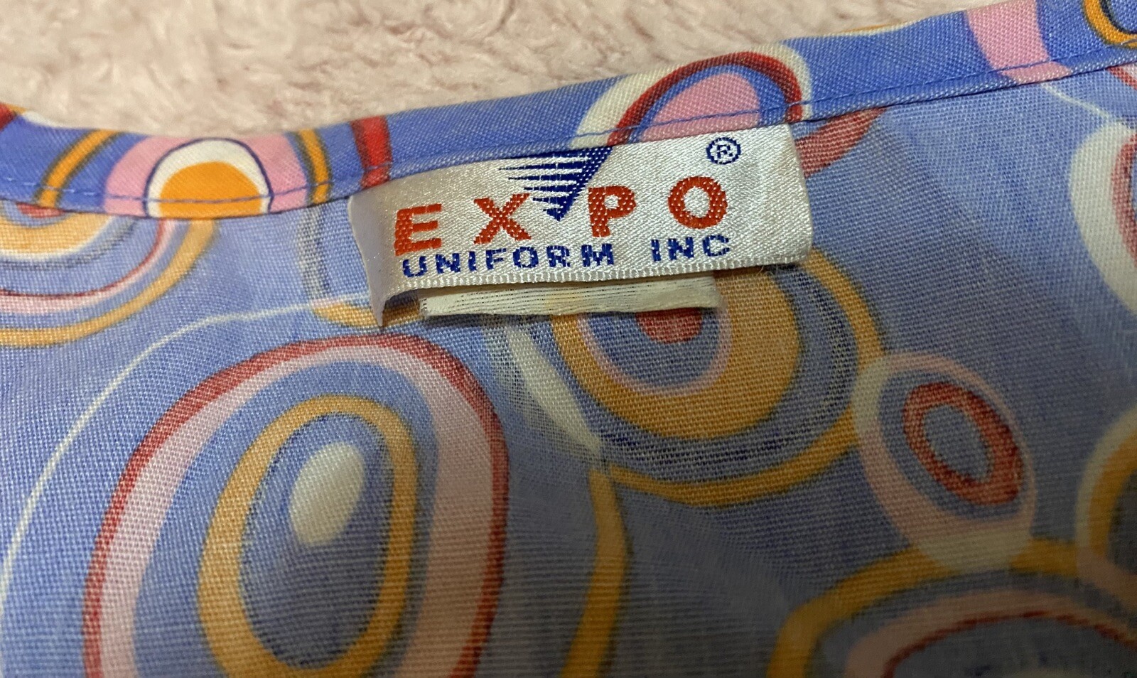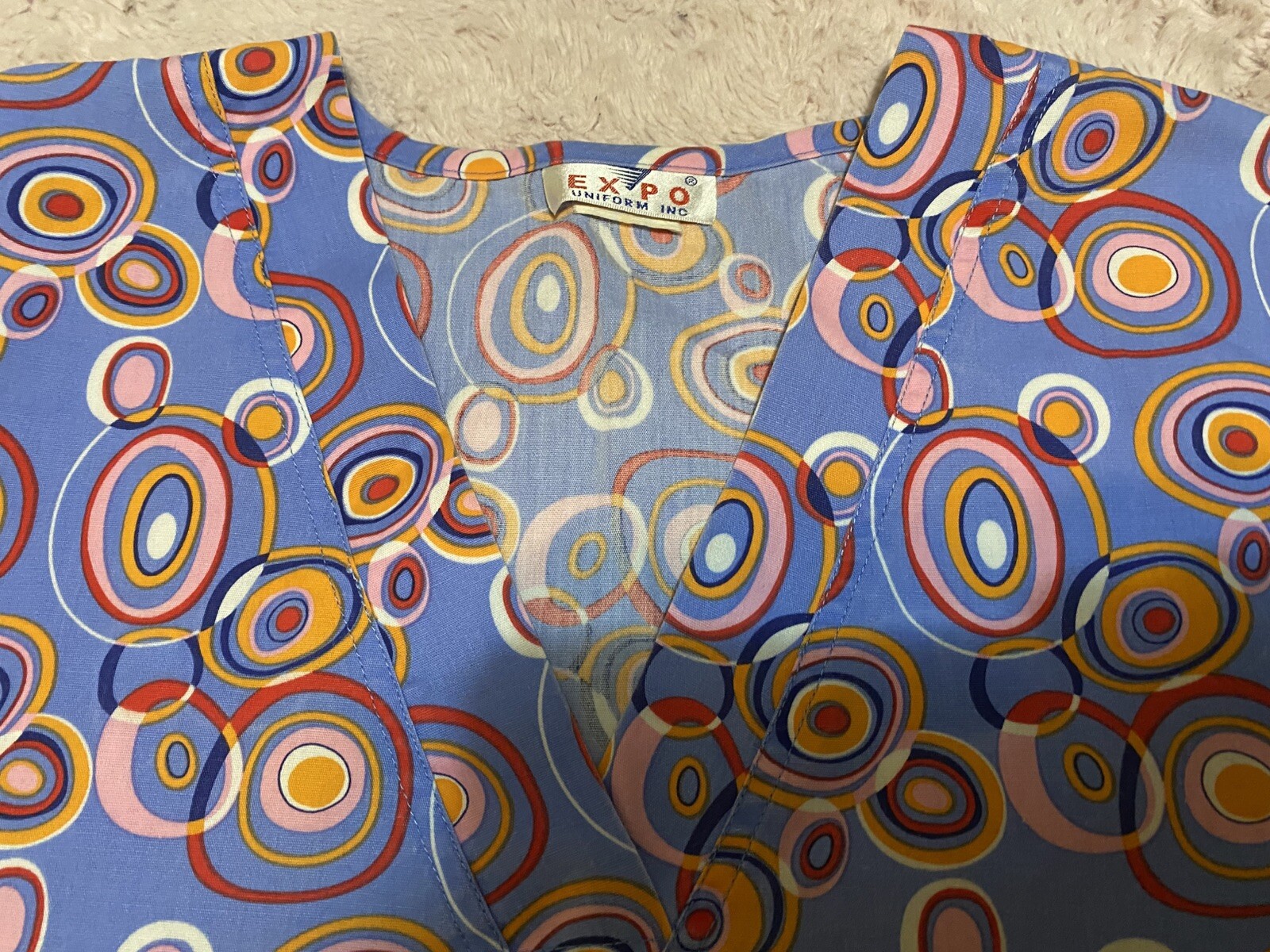 как выглядит Expo Pink Multi-Color Patterned V-Neck Scrub Top Medical Uniform Small фото