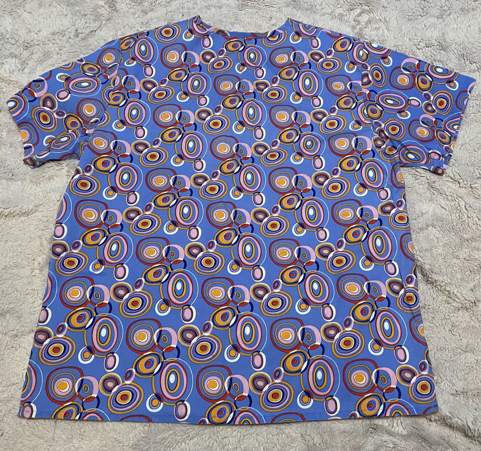 Expo Pink Multi-Color Patterned V-Neck Scrub Top Medical Uniform Small