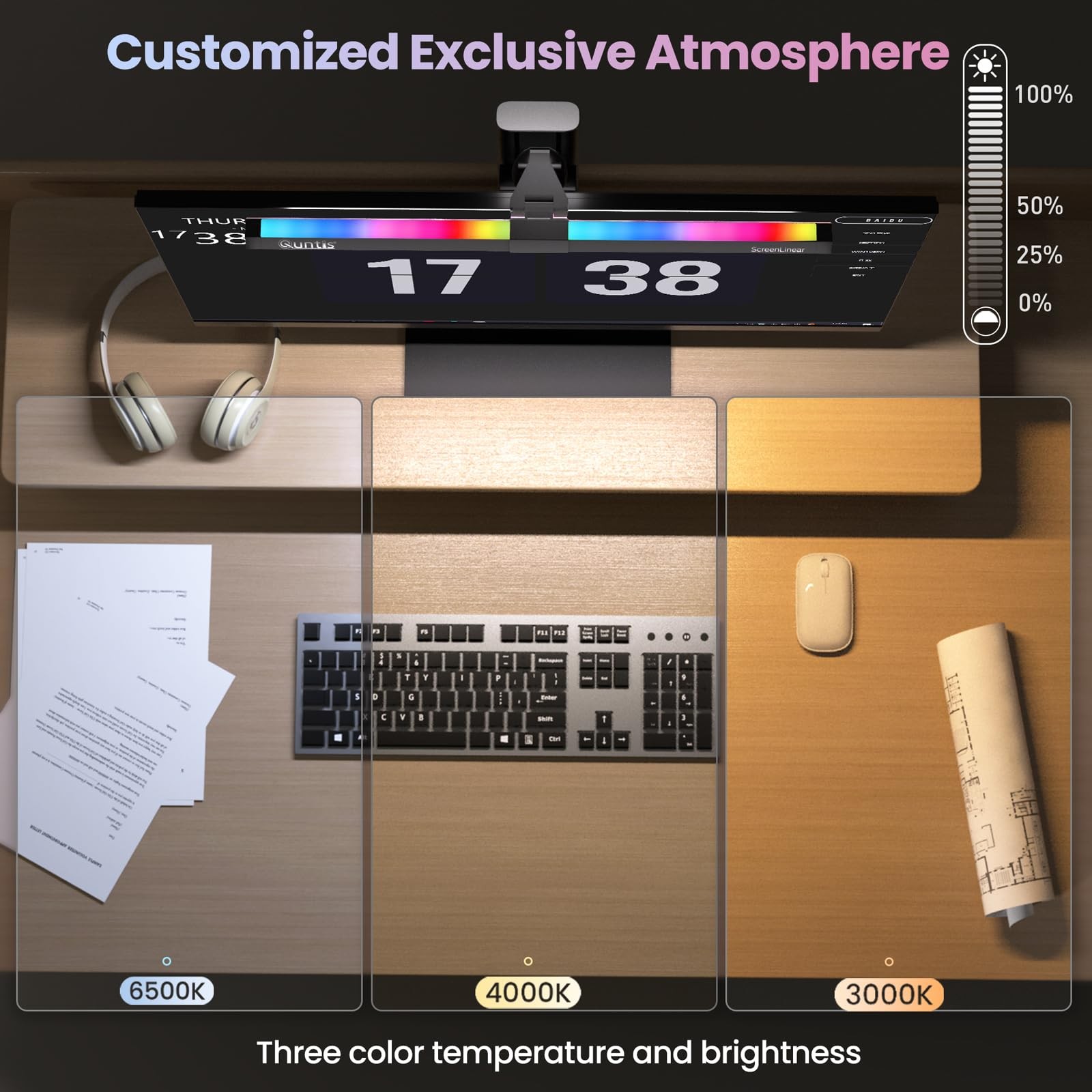 как выглядит Monitor Light RGB Backlight Dual Light Bar Gaming Office Desk Lamp 15 Modes D... фото
