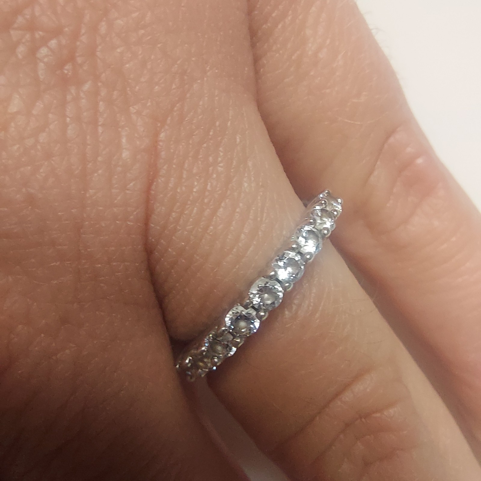как выглядит Vintage 925 Sterling Silver Wedding Band Ring 9 Round Cz Stones Sz 6.75 GUC фото