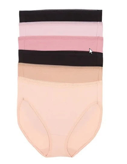 Felina Pima Cotton Blend Hi-cut with Lace Trim Waistband 6 Pack