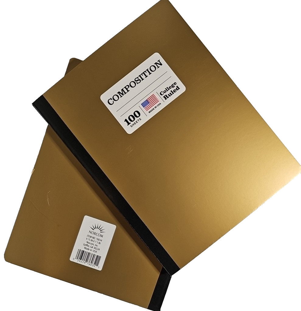 Norcom USA Set of 2 Gold Composition Books College Ruled 100 Sheets 9.75 x 7.5