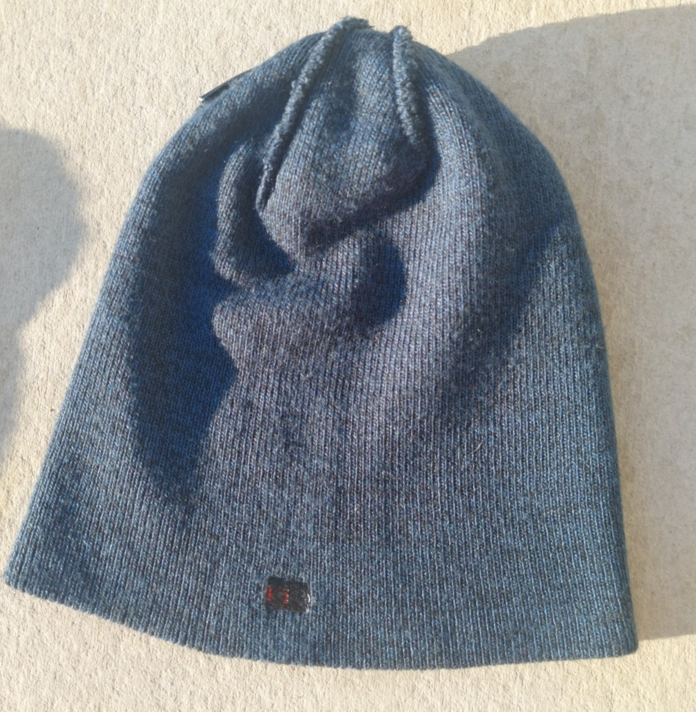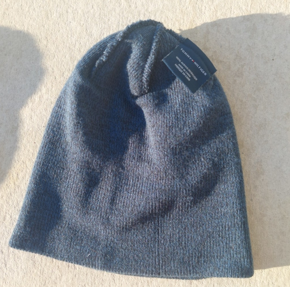 как выглядит TOM HILFIGER BLUE BLACK MARL ACRYLIC RIB KNIT WINTER BEANIE SKI HAT CAP фото