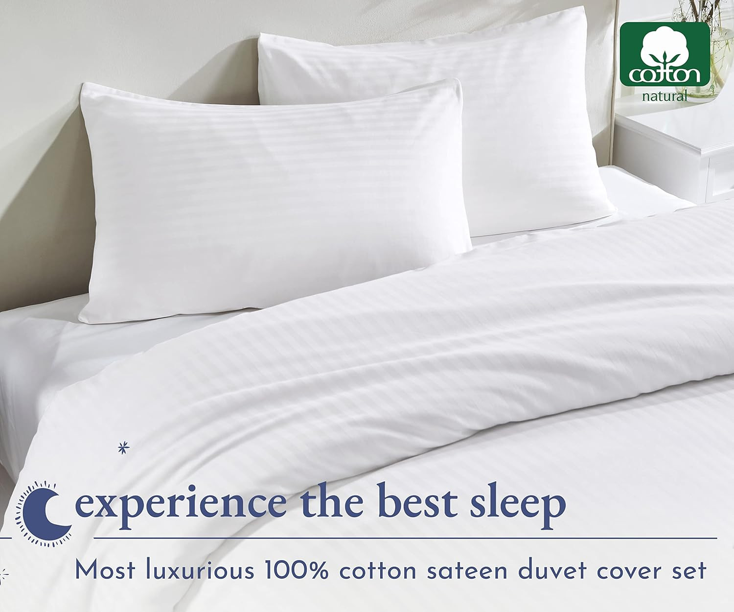 King Size Duvet Cover Set, Premium 400 Thread Count 100 Cotton Sateen, Hotel Qu