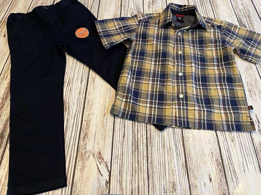 как выглядит Boys Set Gap Shirt Children s Place Navy Blue Chino Pants Slacks Sz 4/5T/5 фото
