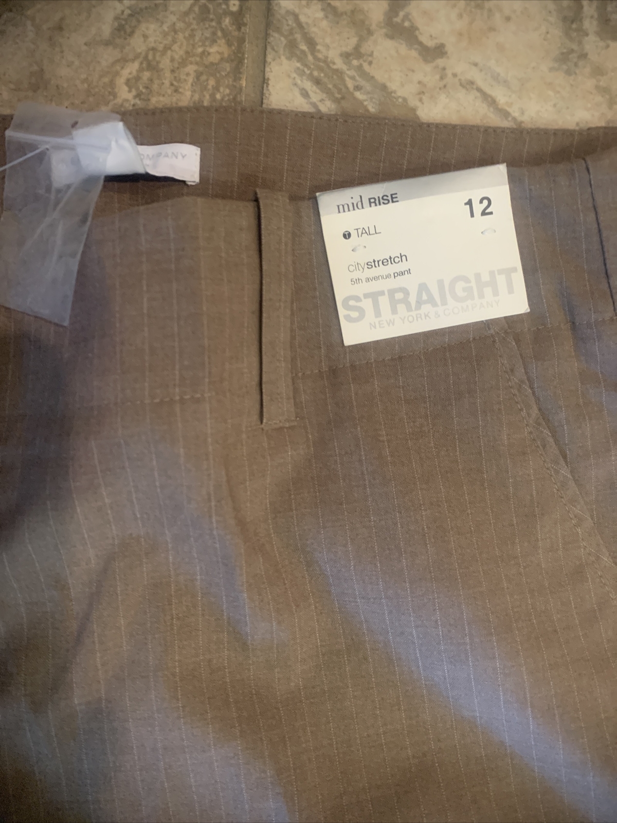как выглядит New York Company 5th Avenue CityStretch Pant Size 12 Tall Brown Pinstripe фото