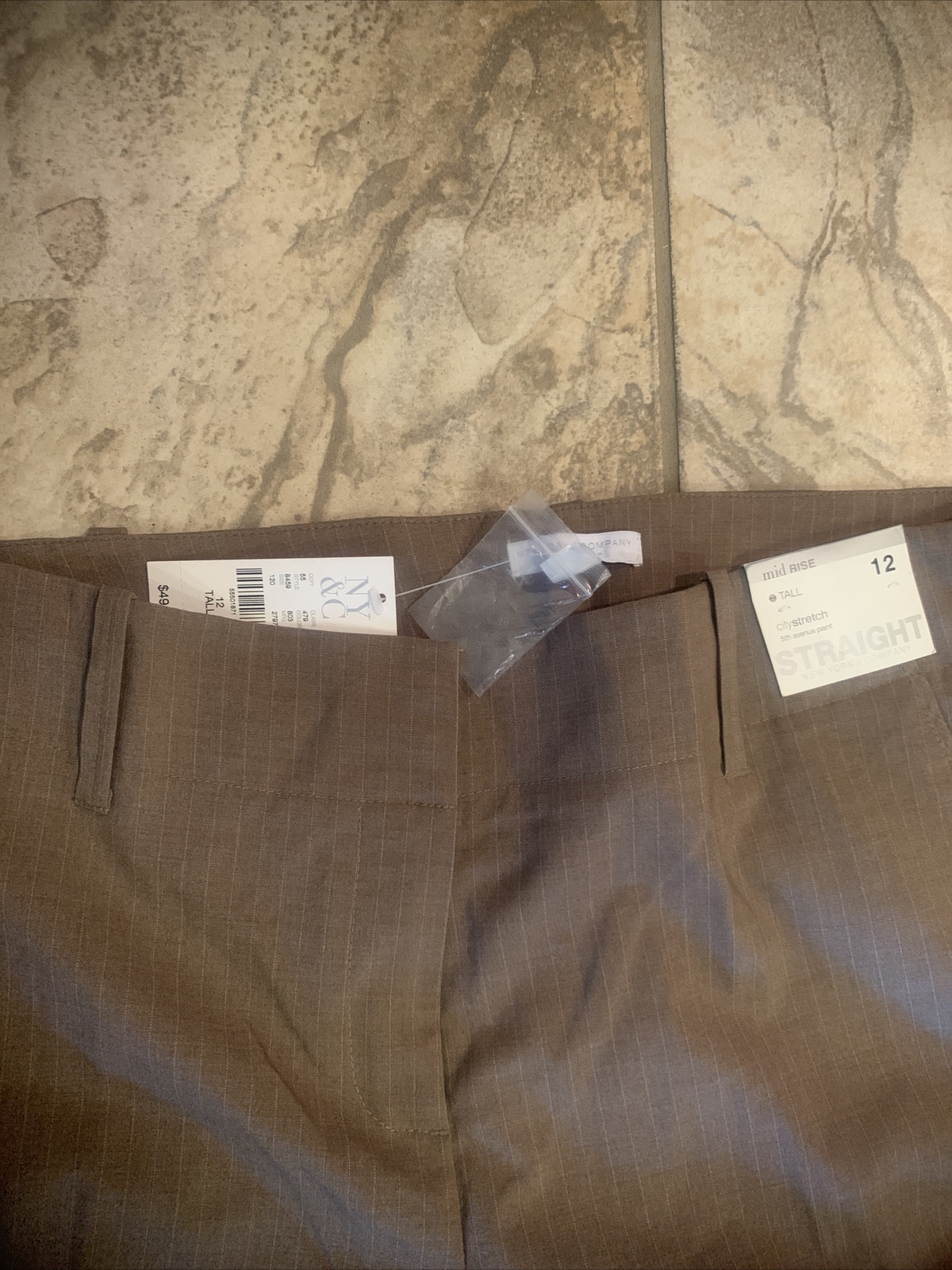 New York Company 5th Avenue CityStretch Pant Size 12 Tall Brown Pinstripe