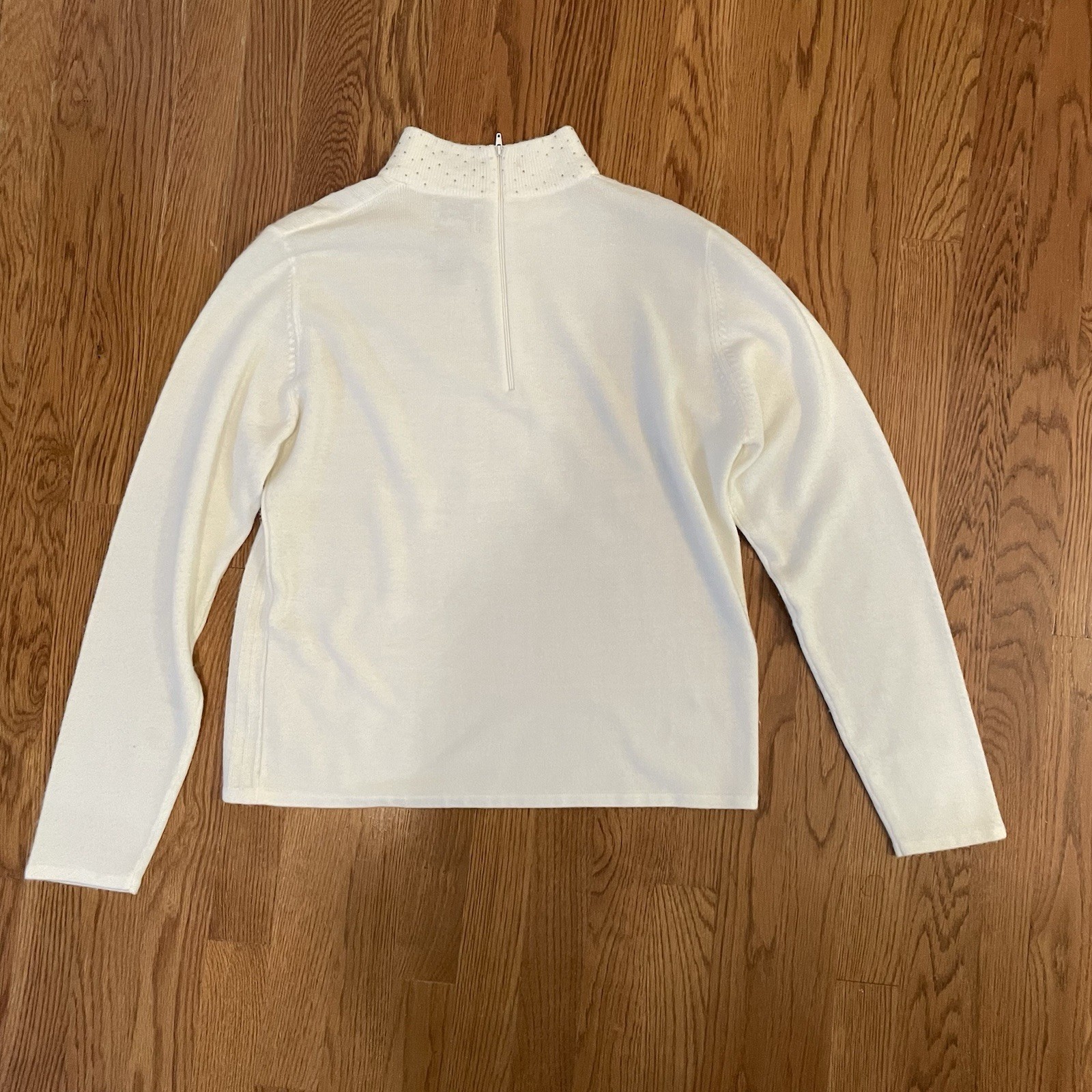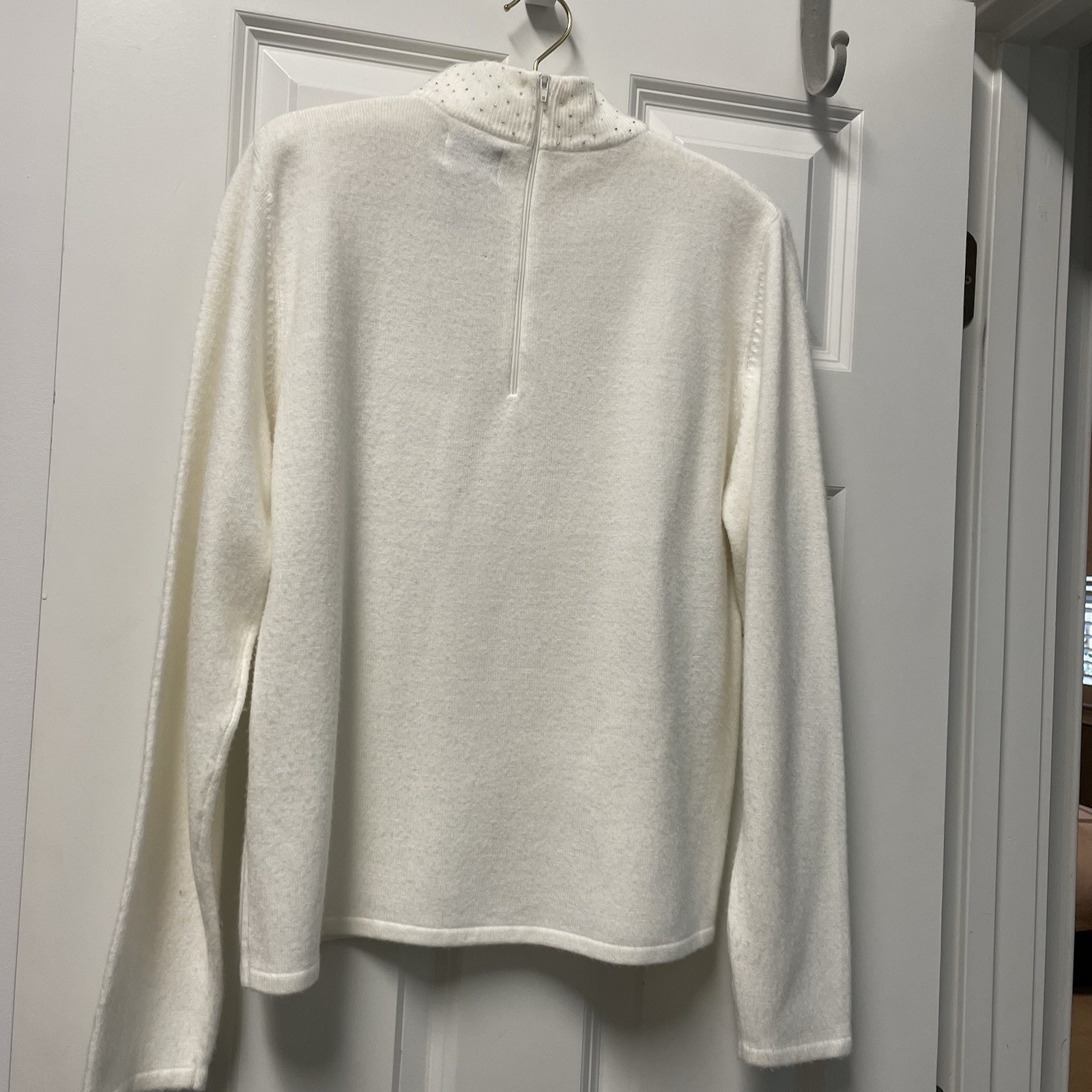 как выглядит Koret Ribbed Long Sleeve Turtleneck Sweater White With Sparkles On Neck, S, Vtg фото