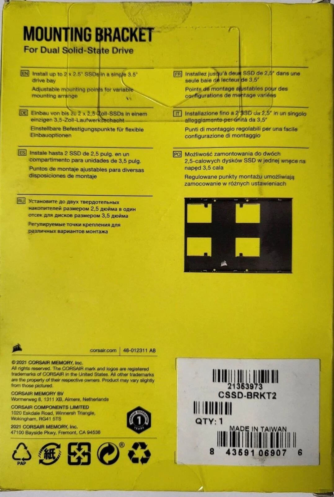 Corsair Dual SSD Mounting Bracket 3.5 Internal Drive Bay to 2.5 Black