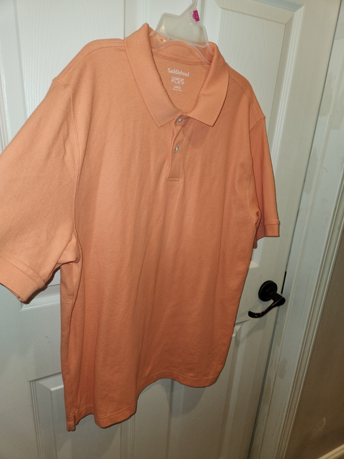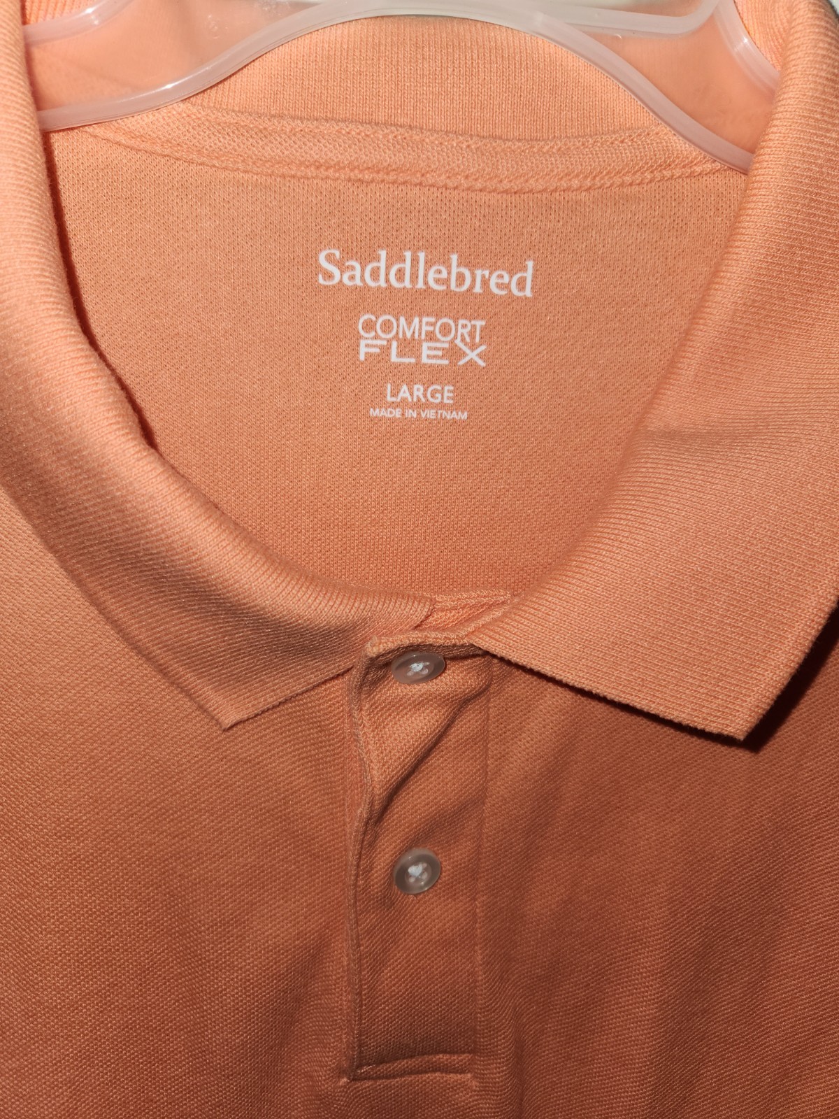 как выглядит Saddlebred Mens L Polo Shirt Comfort Flex Short Sleeve Pique Knit Melon фото