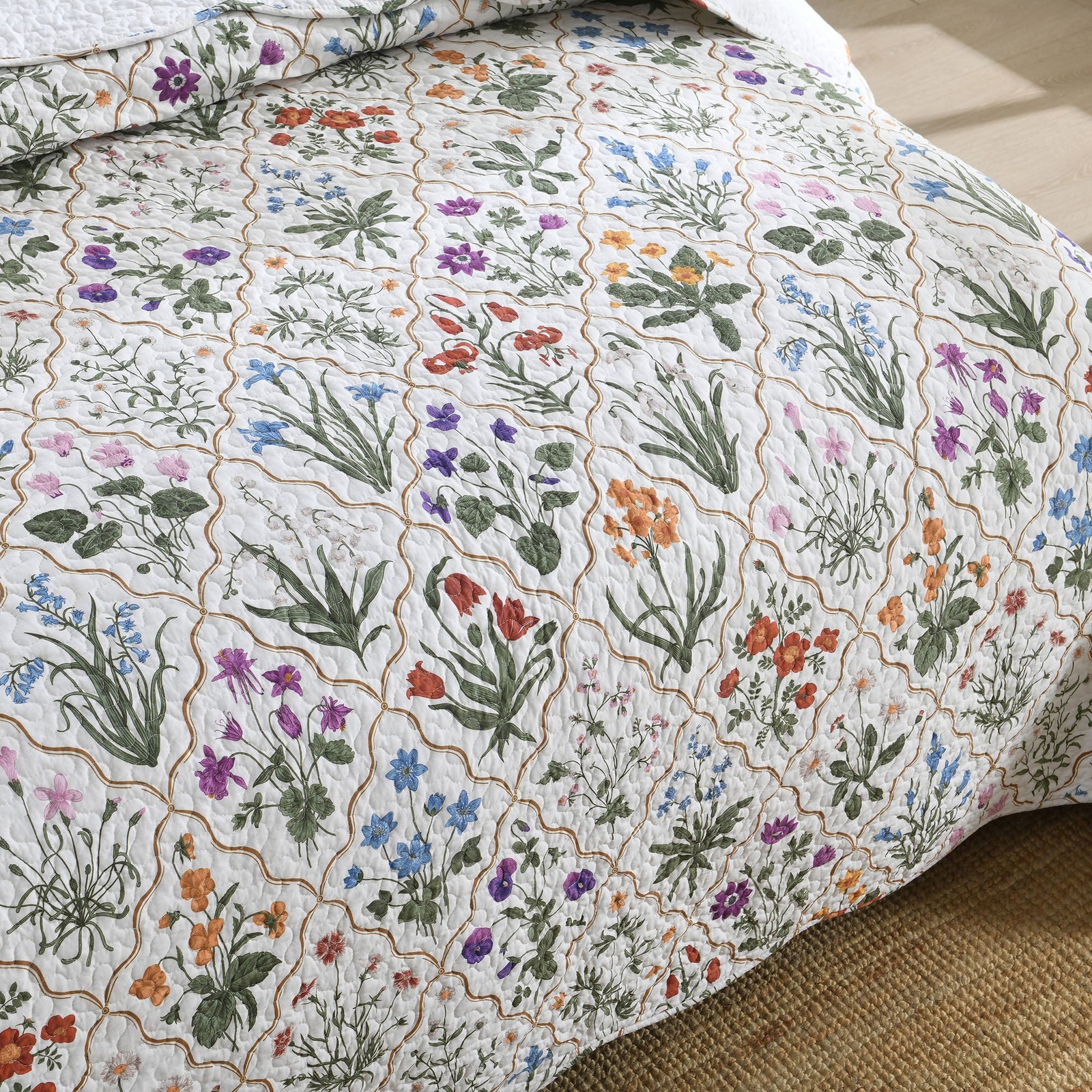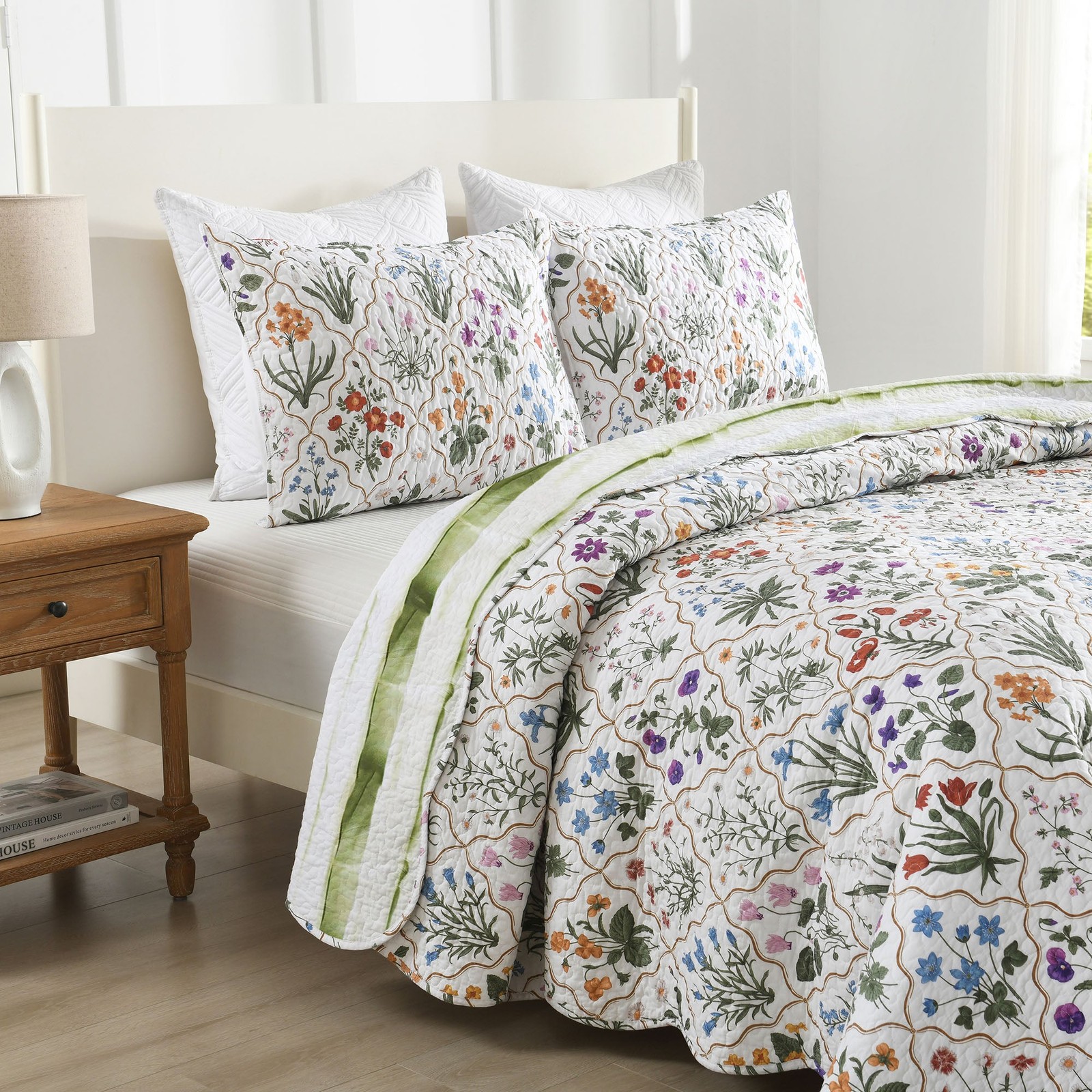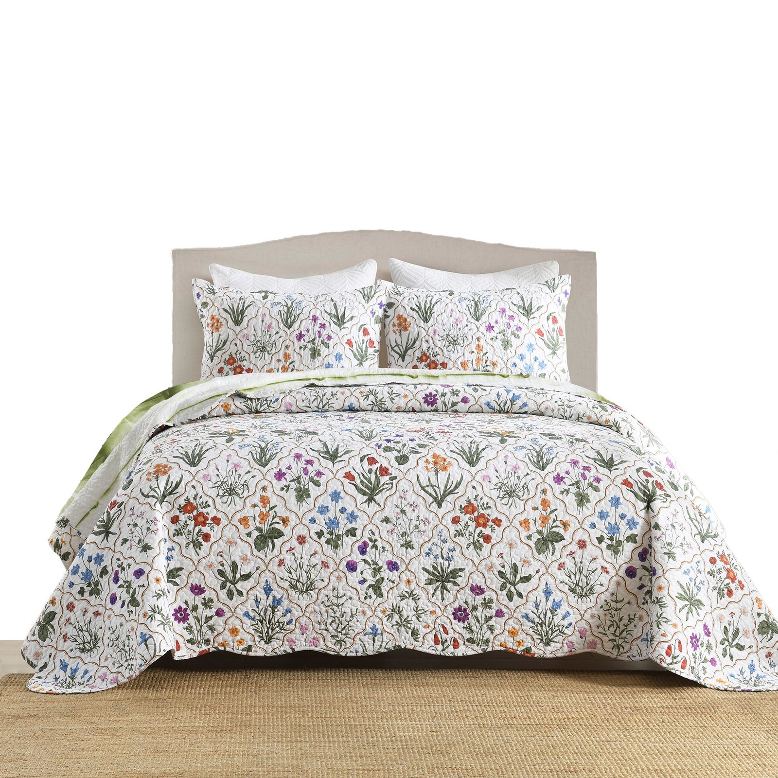 Soft Polyester 3-Piece Botanical Print Bedspread Set Quilted Floral Coverlet