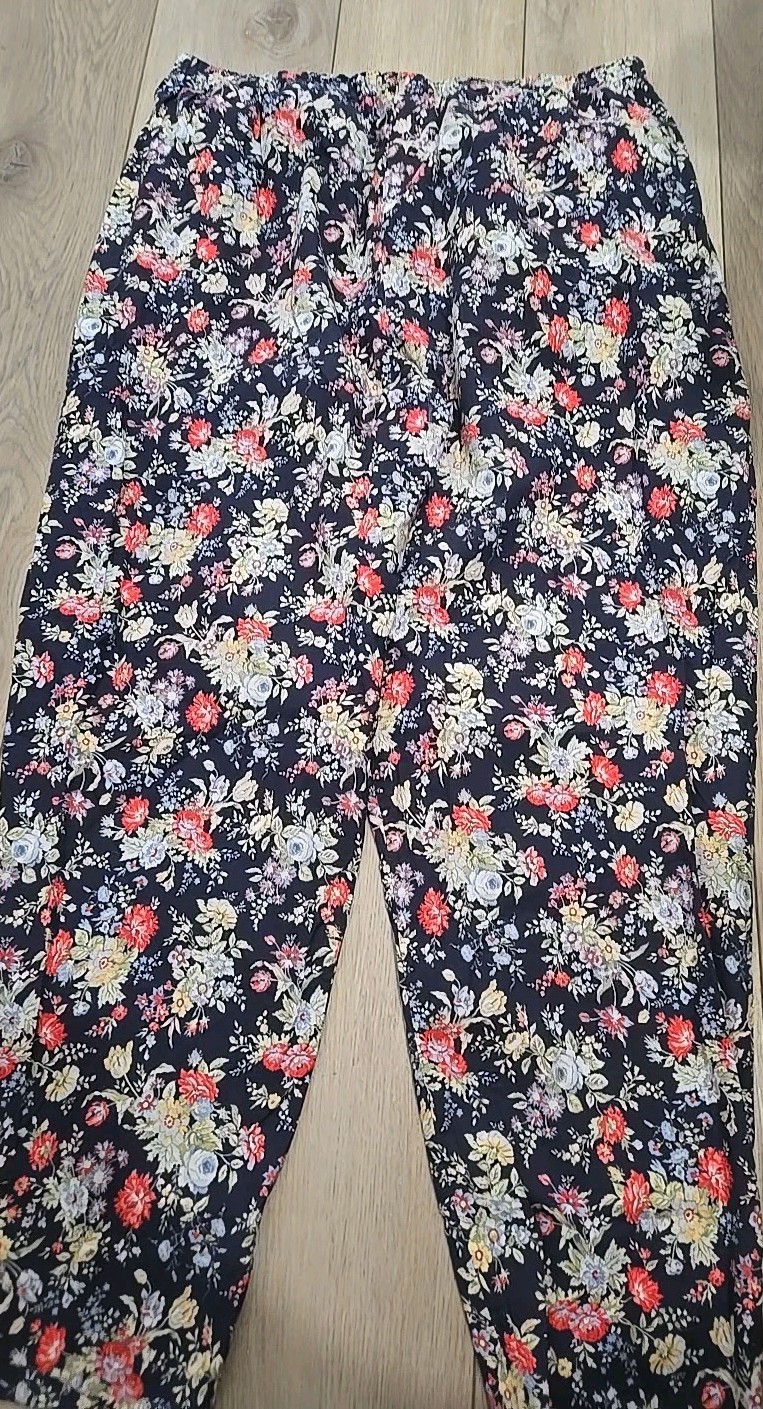 как выглядит VTG Laura Ashley 90s Ditsy Floral Pant Navy Tapered Elastic High Waist Sz L фото