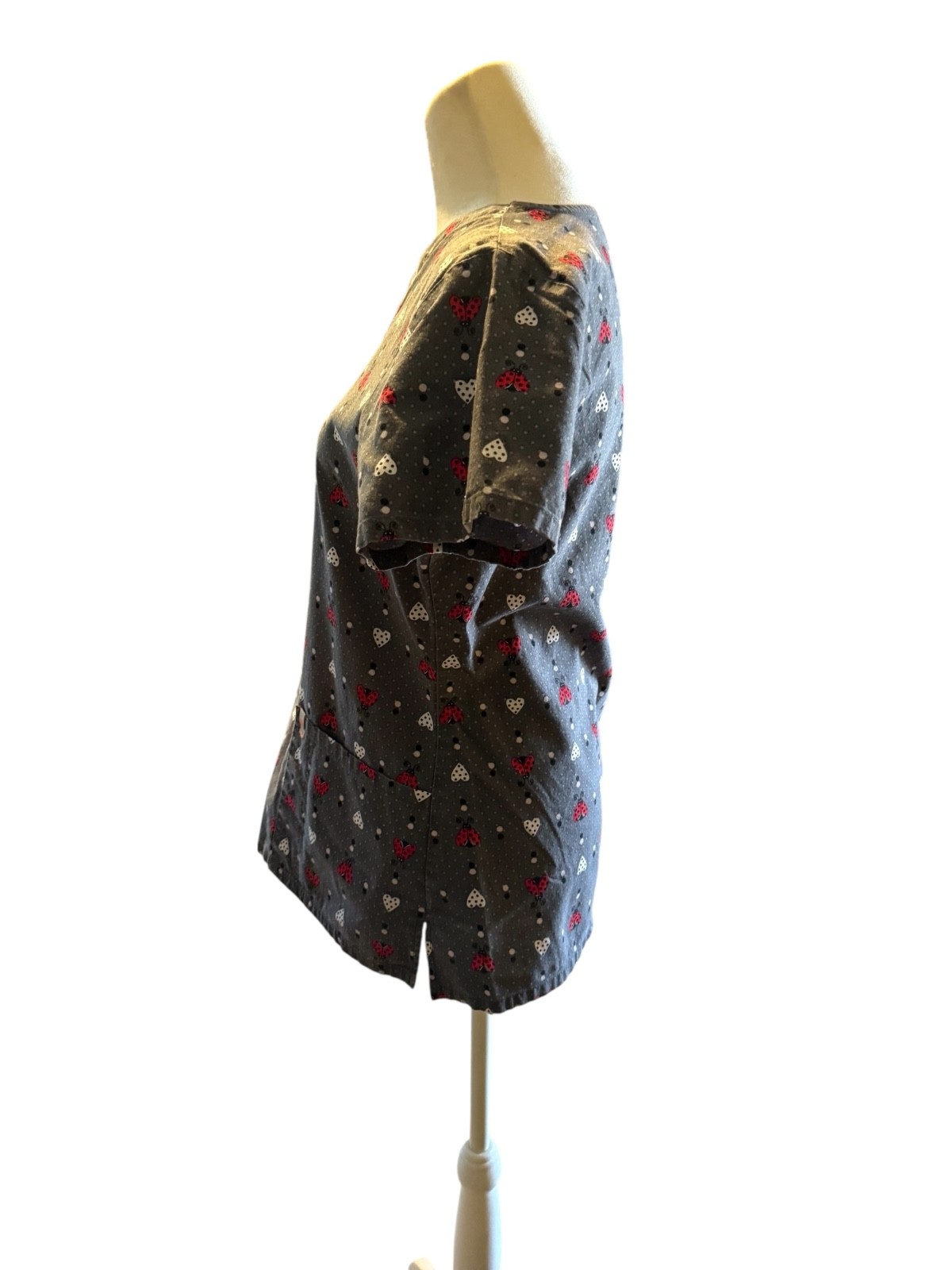 Code Happy Scrub Top Grey With Red Ladybugs White Hearts Size S