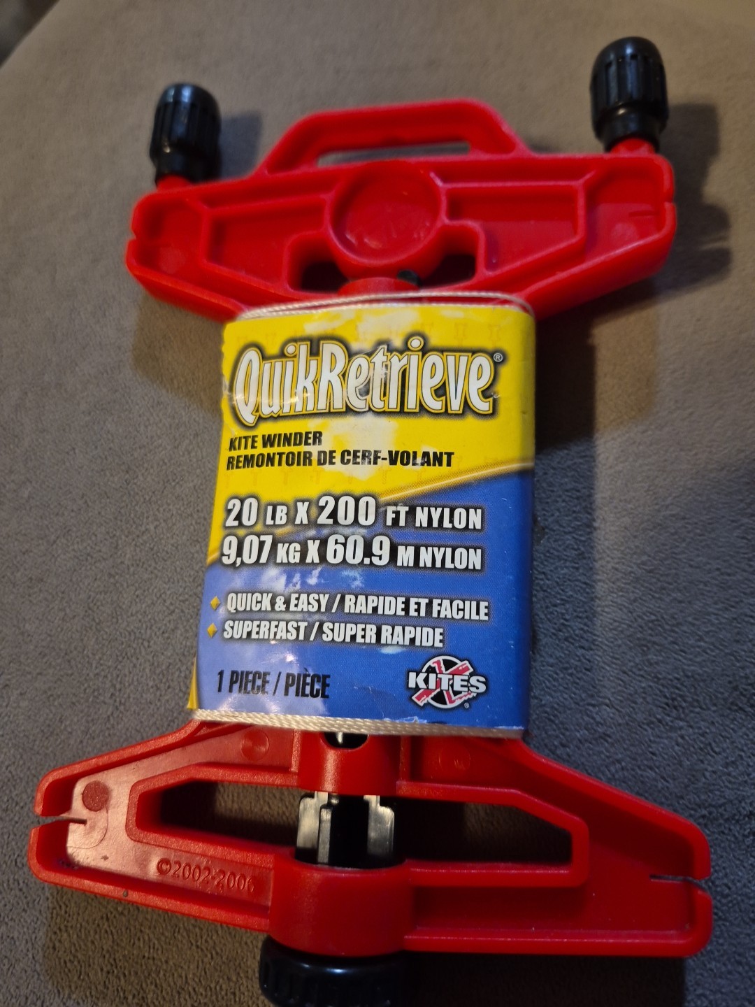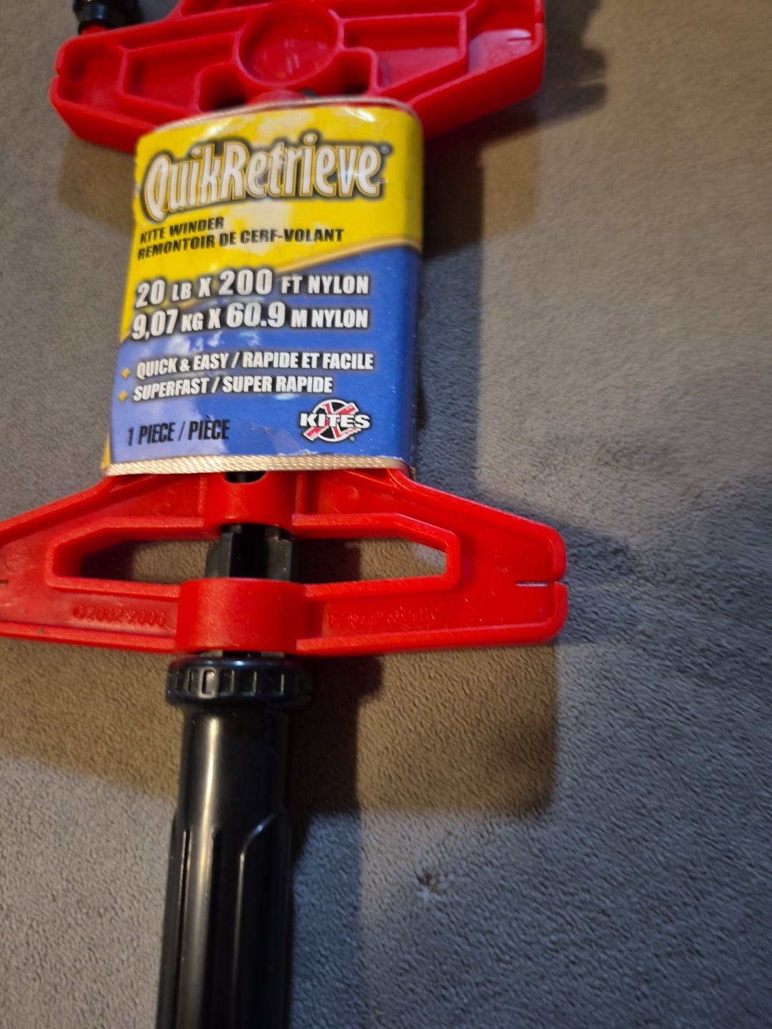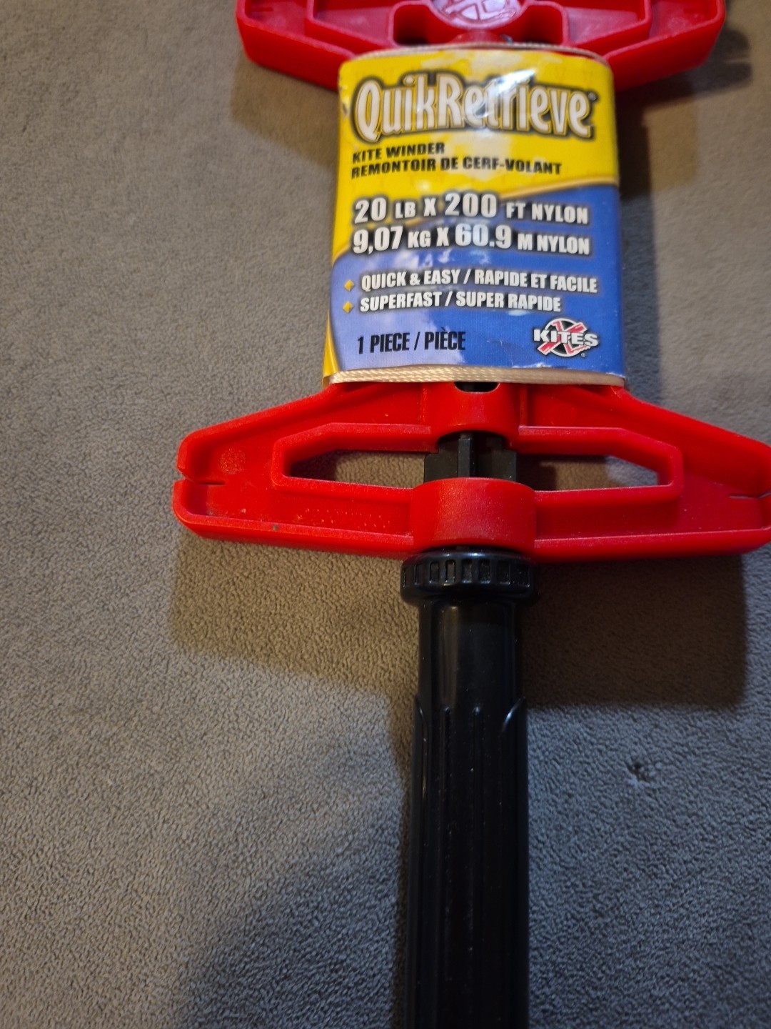 Quik Retrieve Kite String Winder 20 Lb X 200 Ft Nylon With Quickclip Red