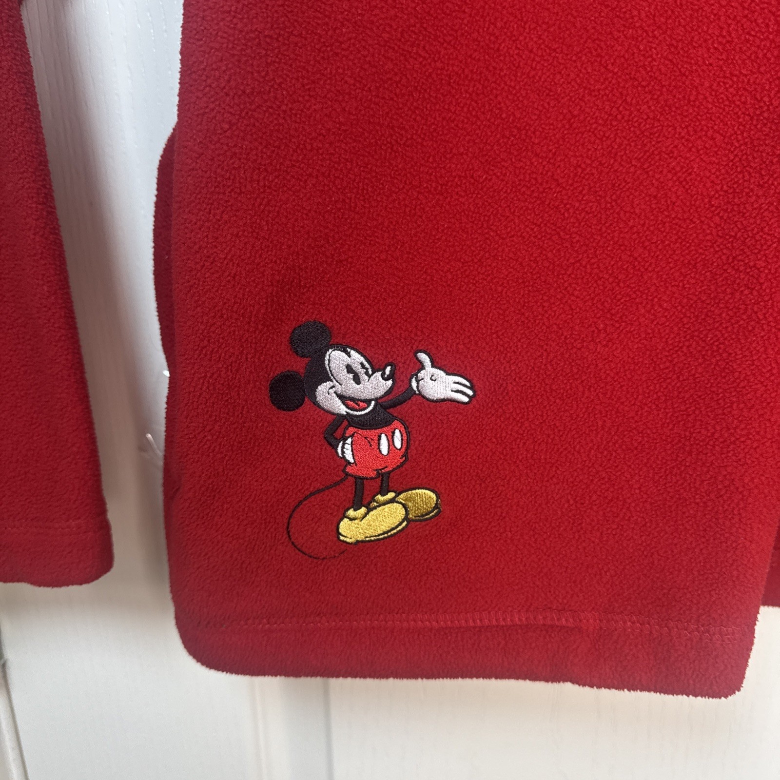 как выглядит Vintage Disney Embroidered Mickey Mouse Red Fleece 3/4 Zip, Disney Direct XL фото