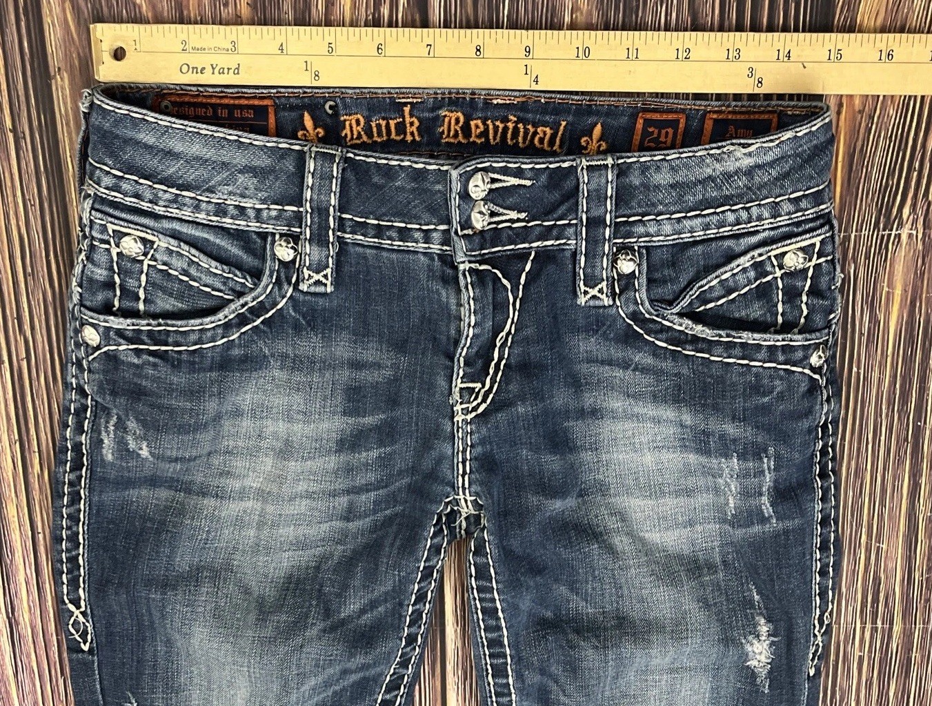 как выглядит Rock Revival Amy Capri Denim Embroidered Distressed Jeans Womens Size 29 фото