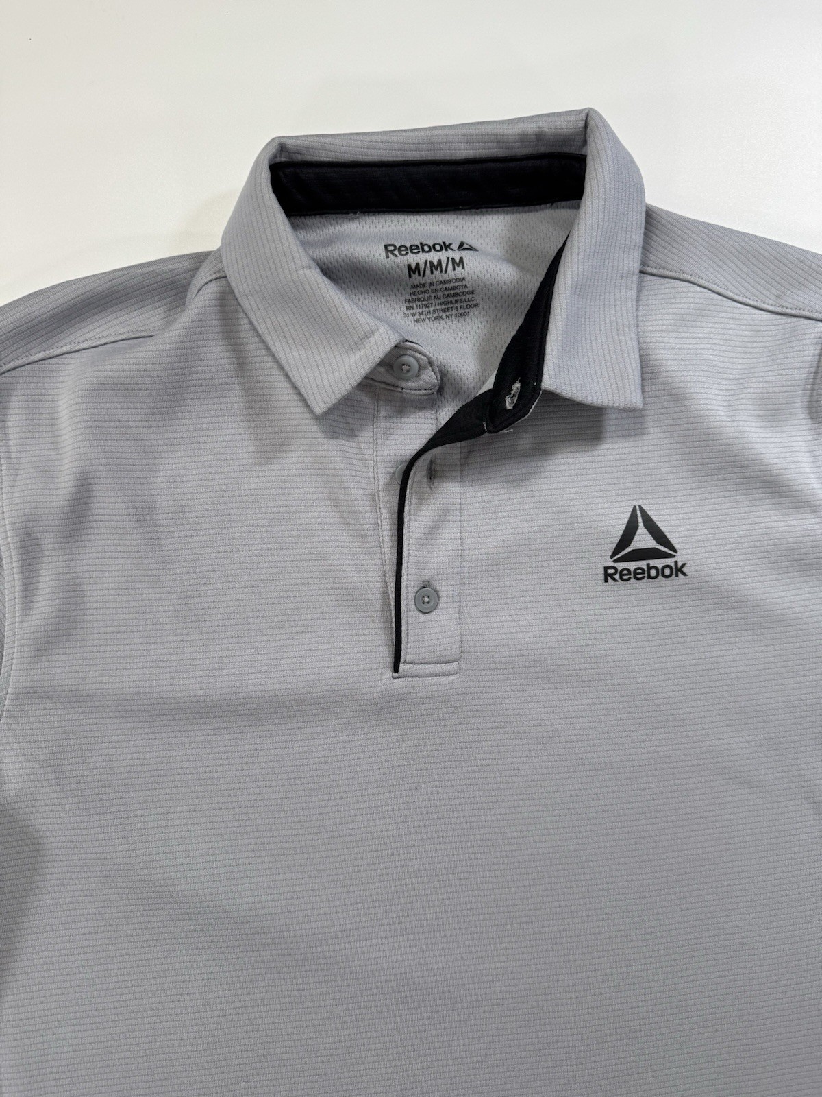 как выглядит Reebok Performance Polo Shirt Gray Mens Size Med Short Sleeve Shirt Golf logo фото