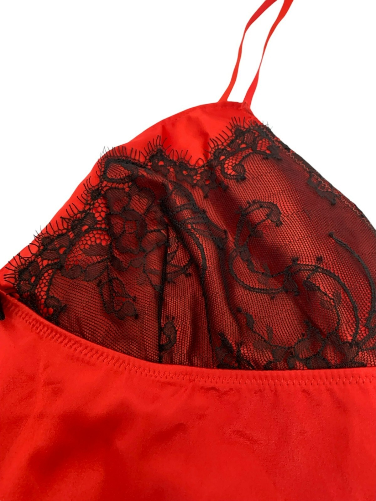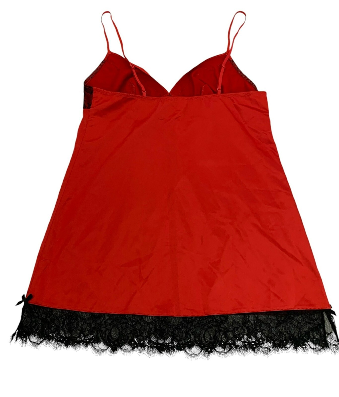 Victoria's Secret Red Black Lace Satin Nightgown Mini Slip Dress M Holiday