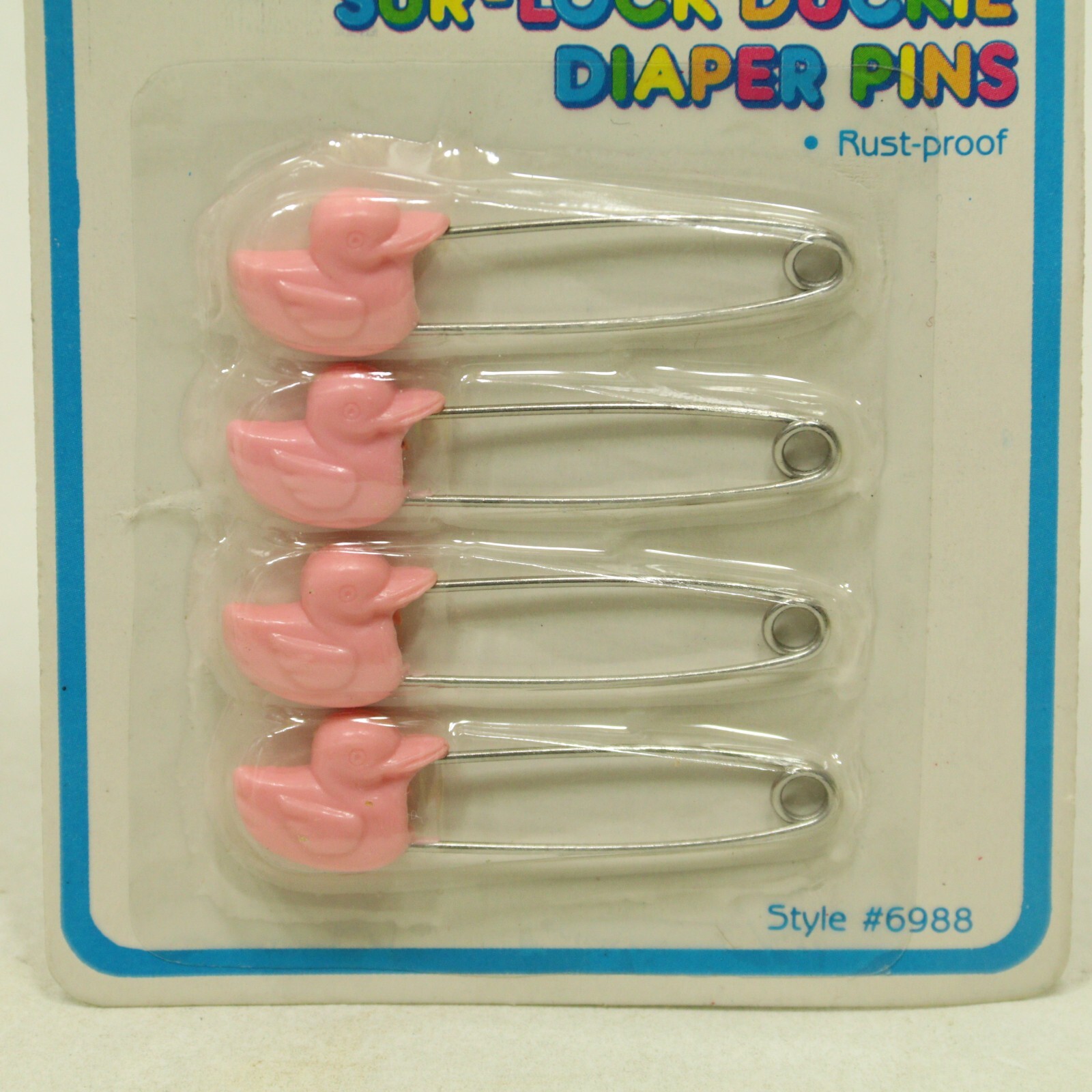 Vintage Pink Duck Safety Pins Lot of 4 Cloth Diaper Baby Shower Craft NEW