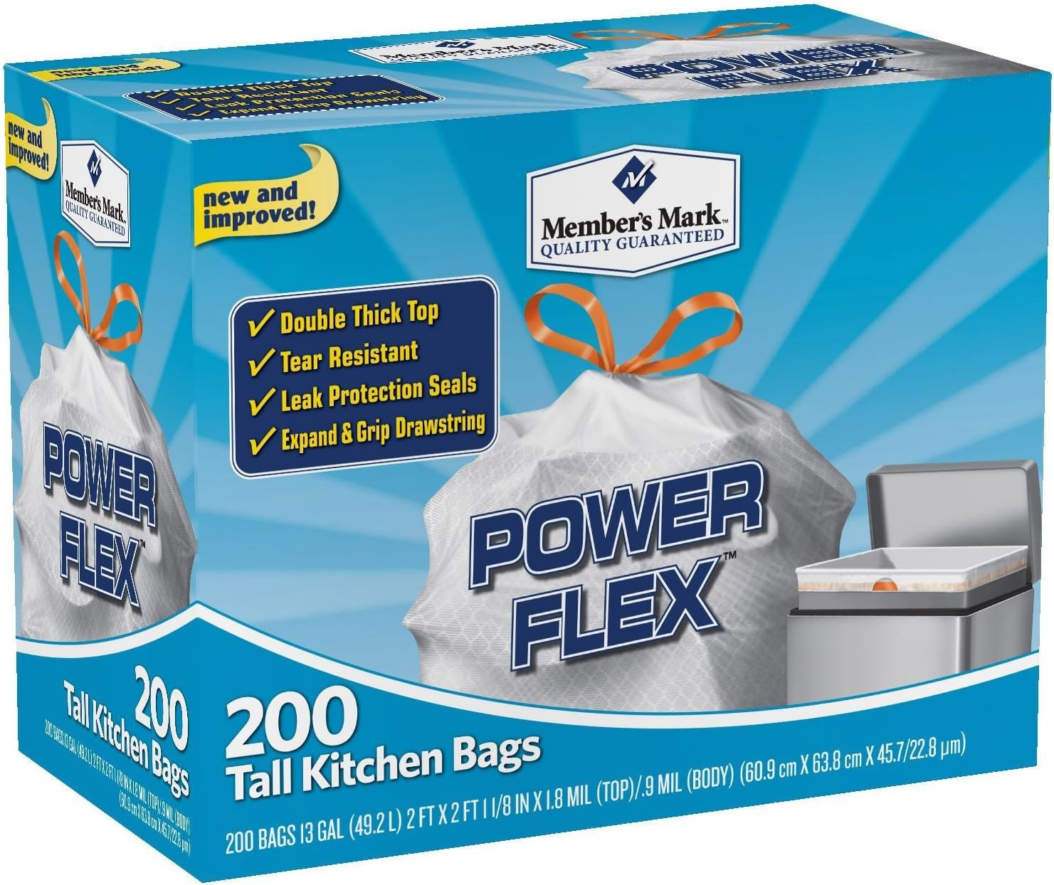 13 Gal Power Flex, Leak Protection, Tall Kitchen Simple Fit Drawstring Bags Fle