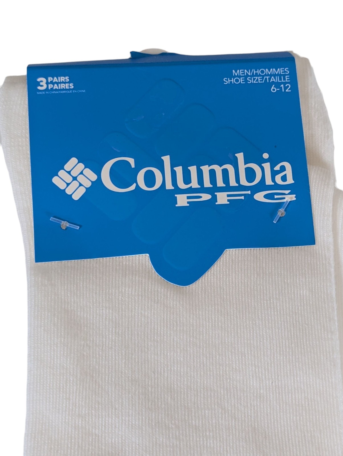 Columbia PFG Crew Cut Men's Socks Size 6-12 White 3 pack Fish Logo New