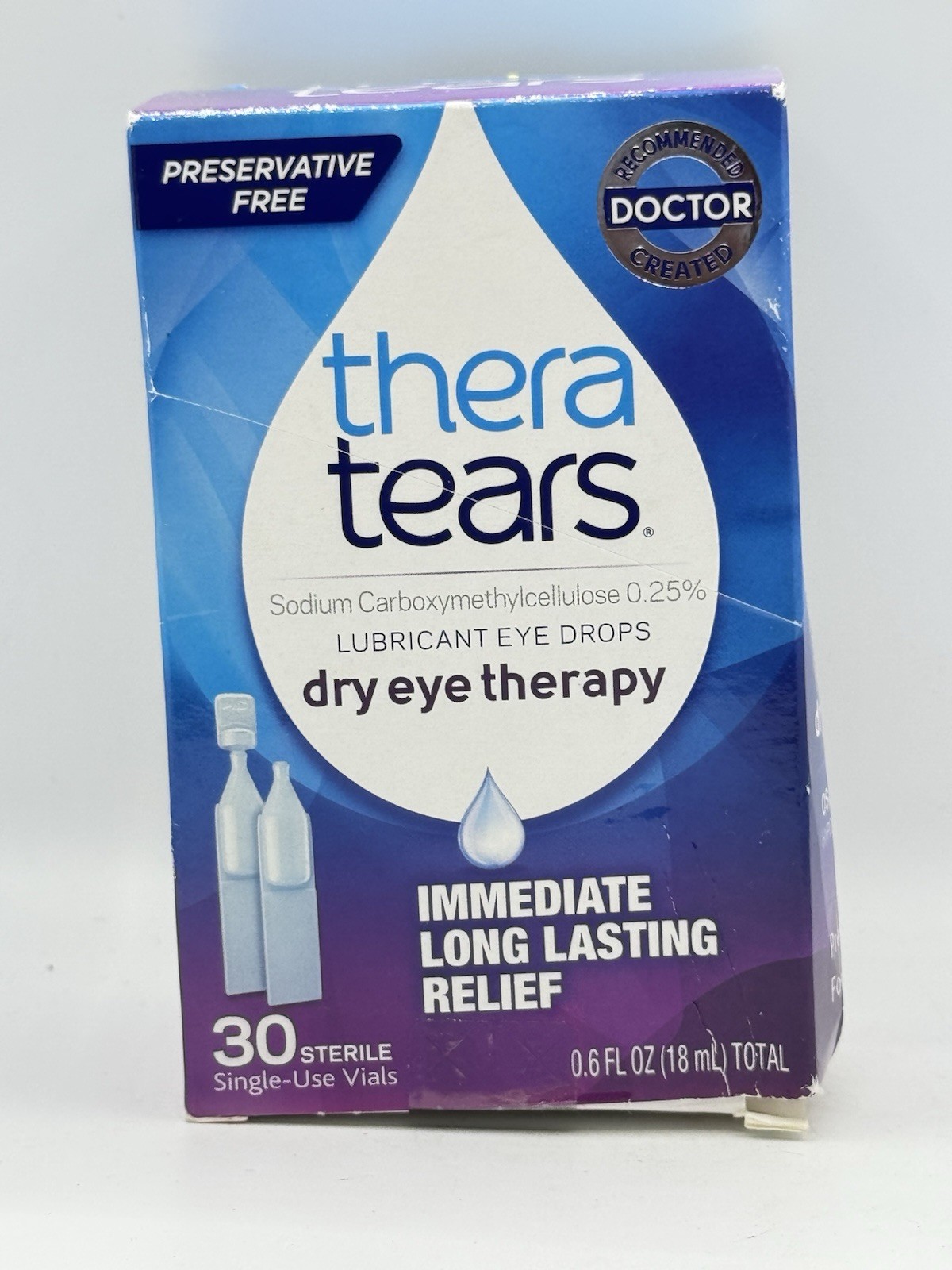 THERA TEARS DRY EYE THERAPY LUBRICANT DROPS, 30 VIALS, Ex 10/26 Box Damaged