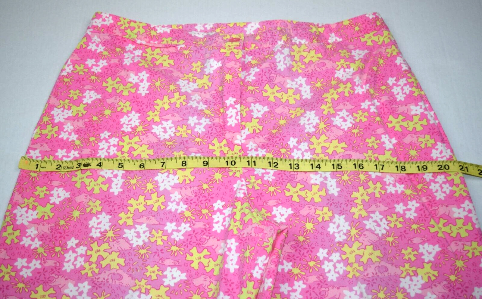 как выглядит Vintage Lilly Pulitzer Pants Size 12 90s Bubble Gum Pink Hippos Yellow Splashes фото