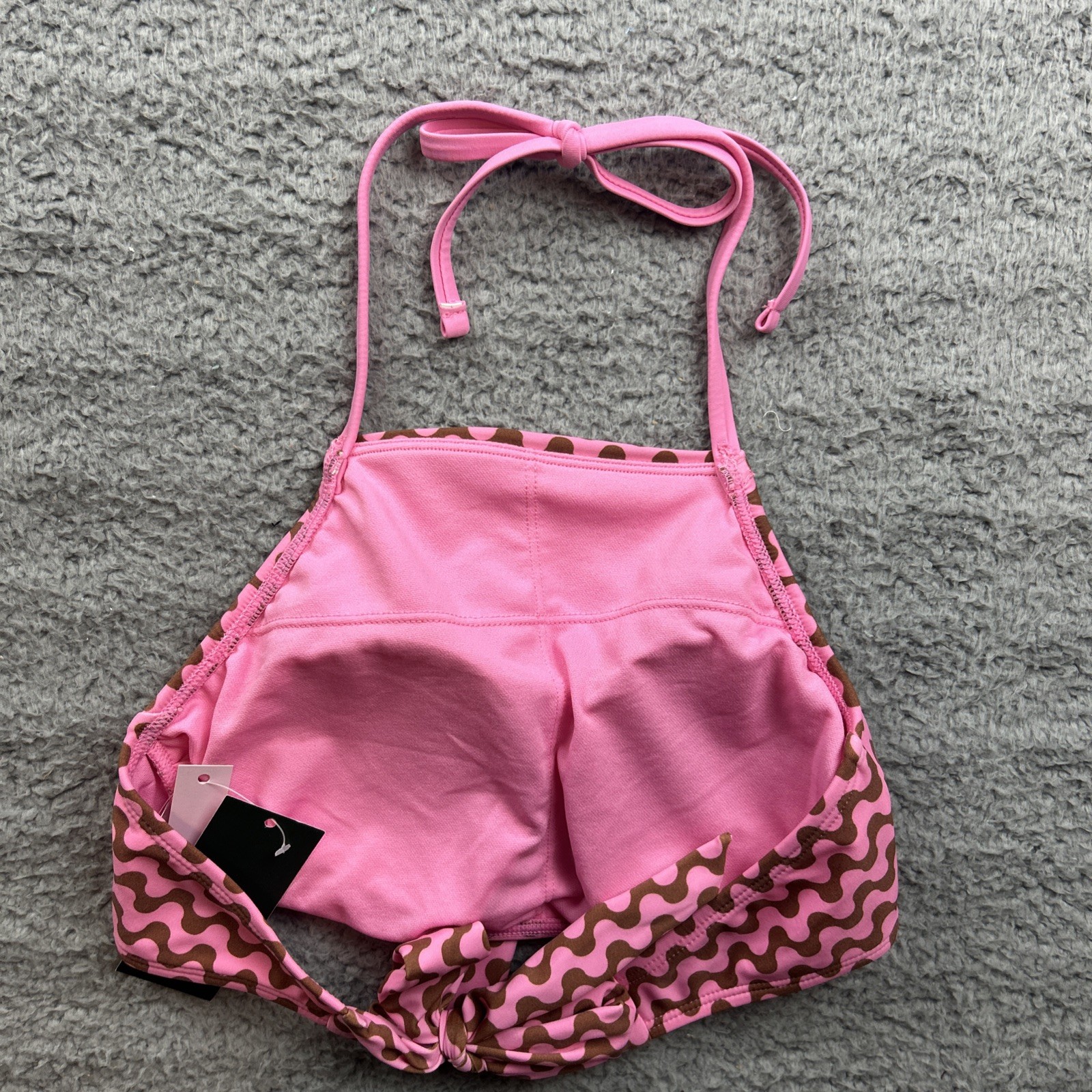 Wild Fable Womens Small 4/6 High Neck Bralette Bikini Top Pink/Brown Wave