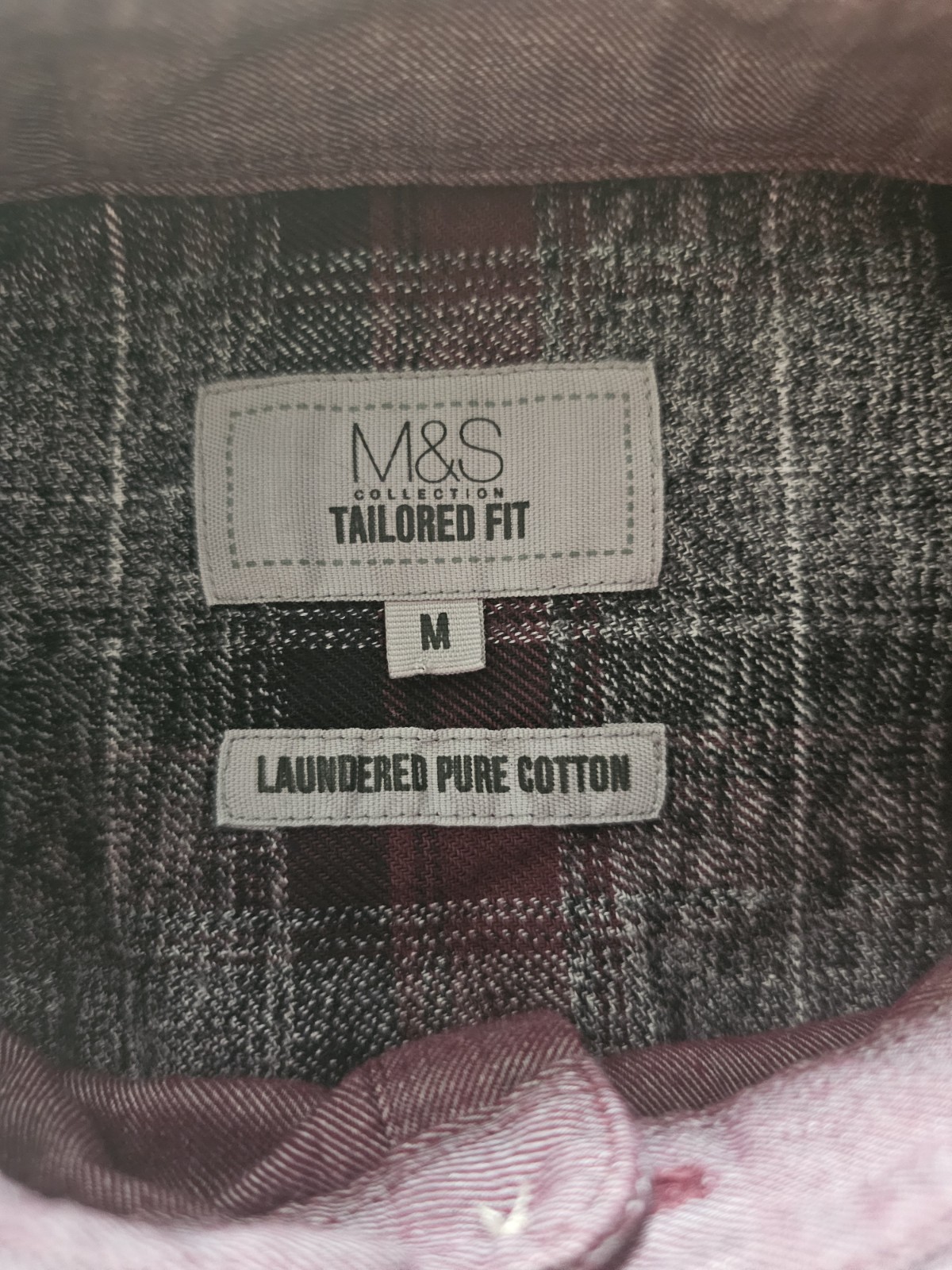 как выглядит M S Tailored Fit Shirt Laundered Pure Cotton Size Medium Burgundy Long Sleeves фото
