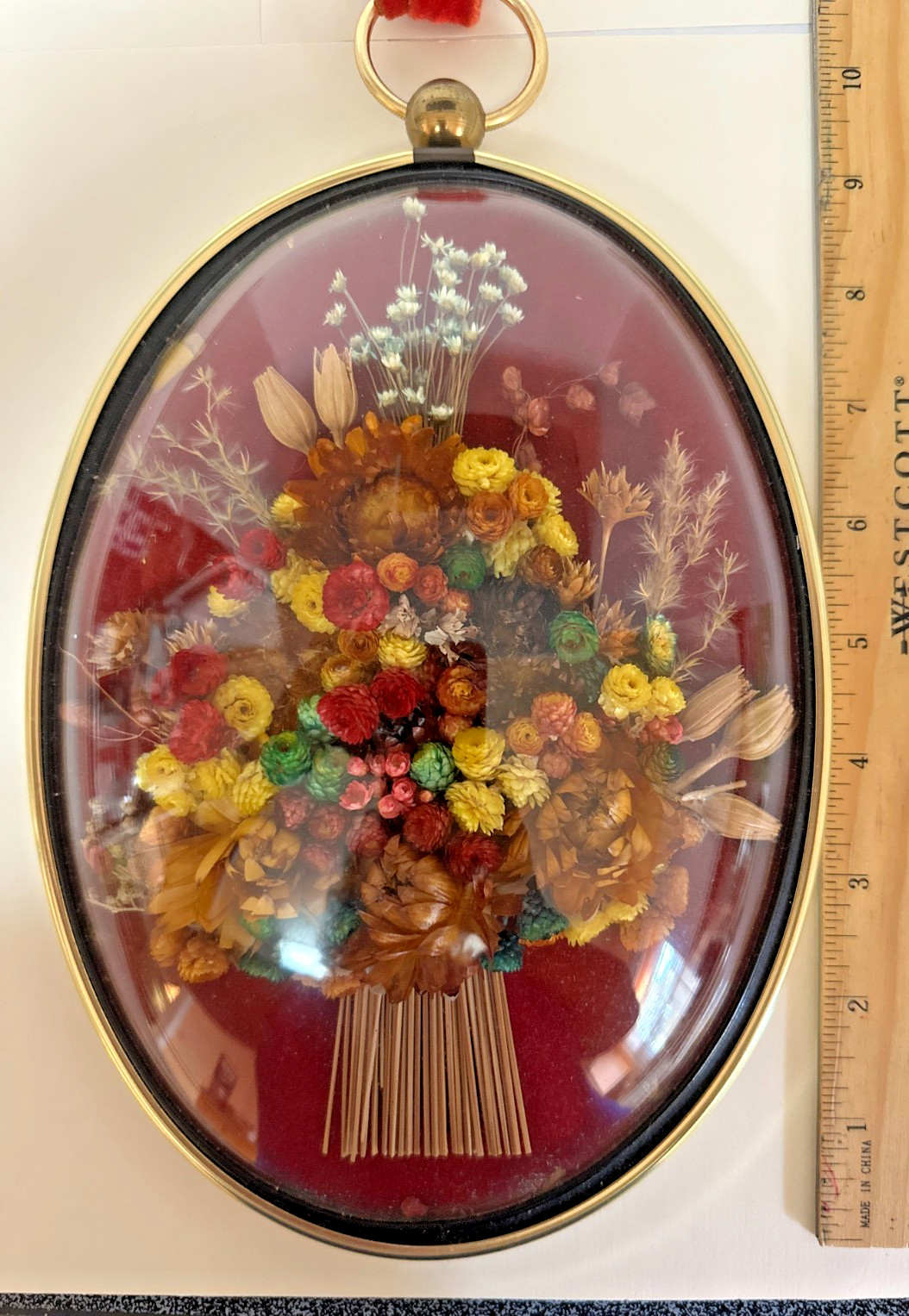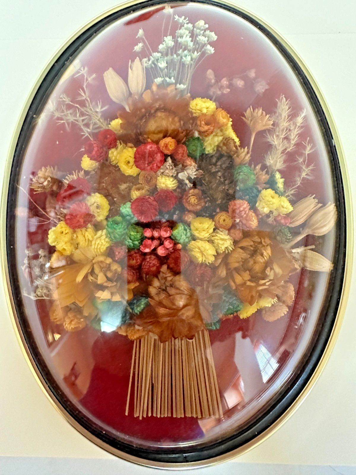 Vtg Dried Flowers Wall Art Oval Frame Dome Convex Glass Cideart Belgium 9x6 1/2